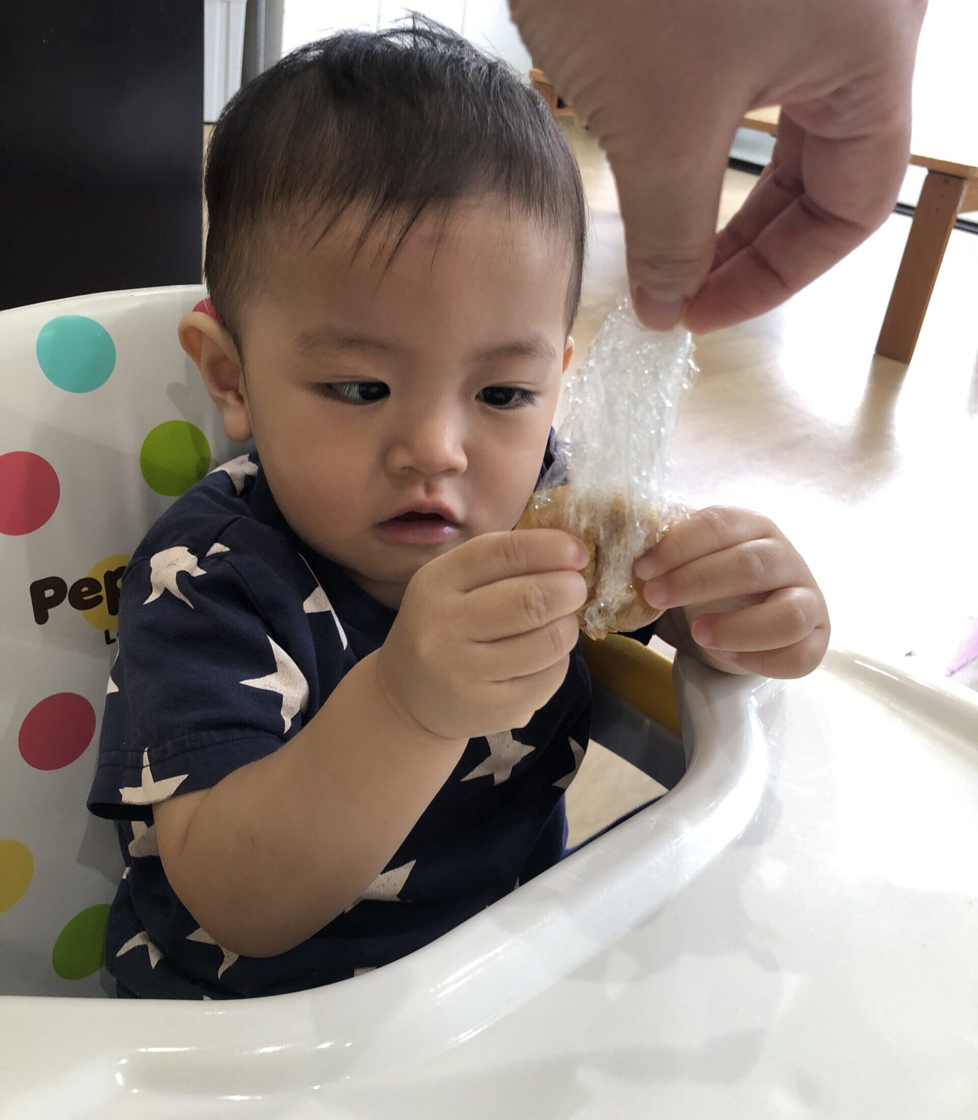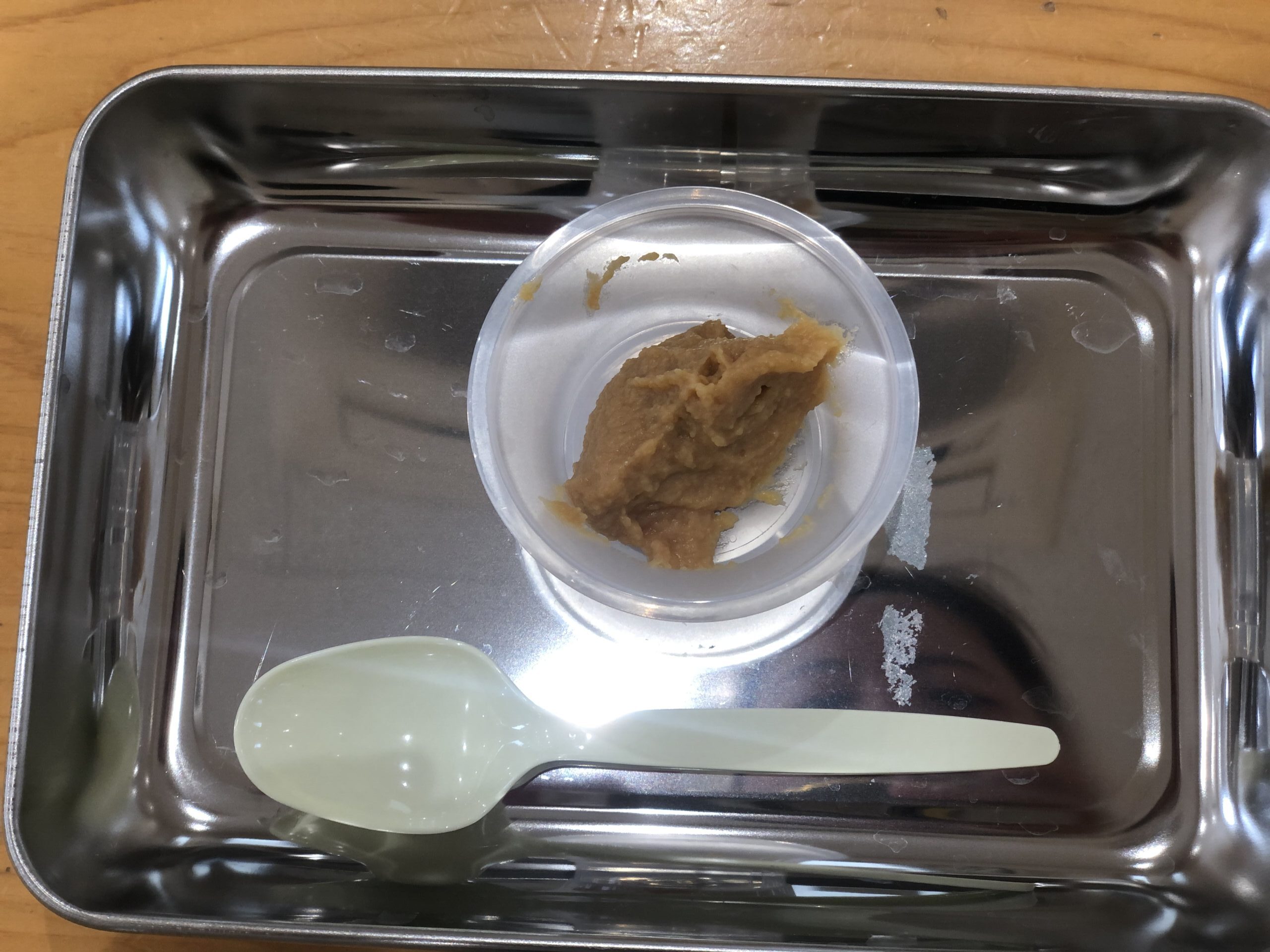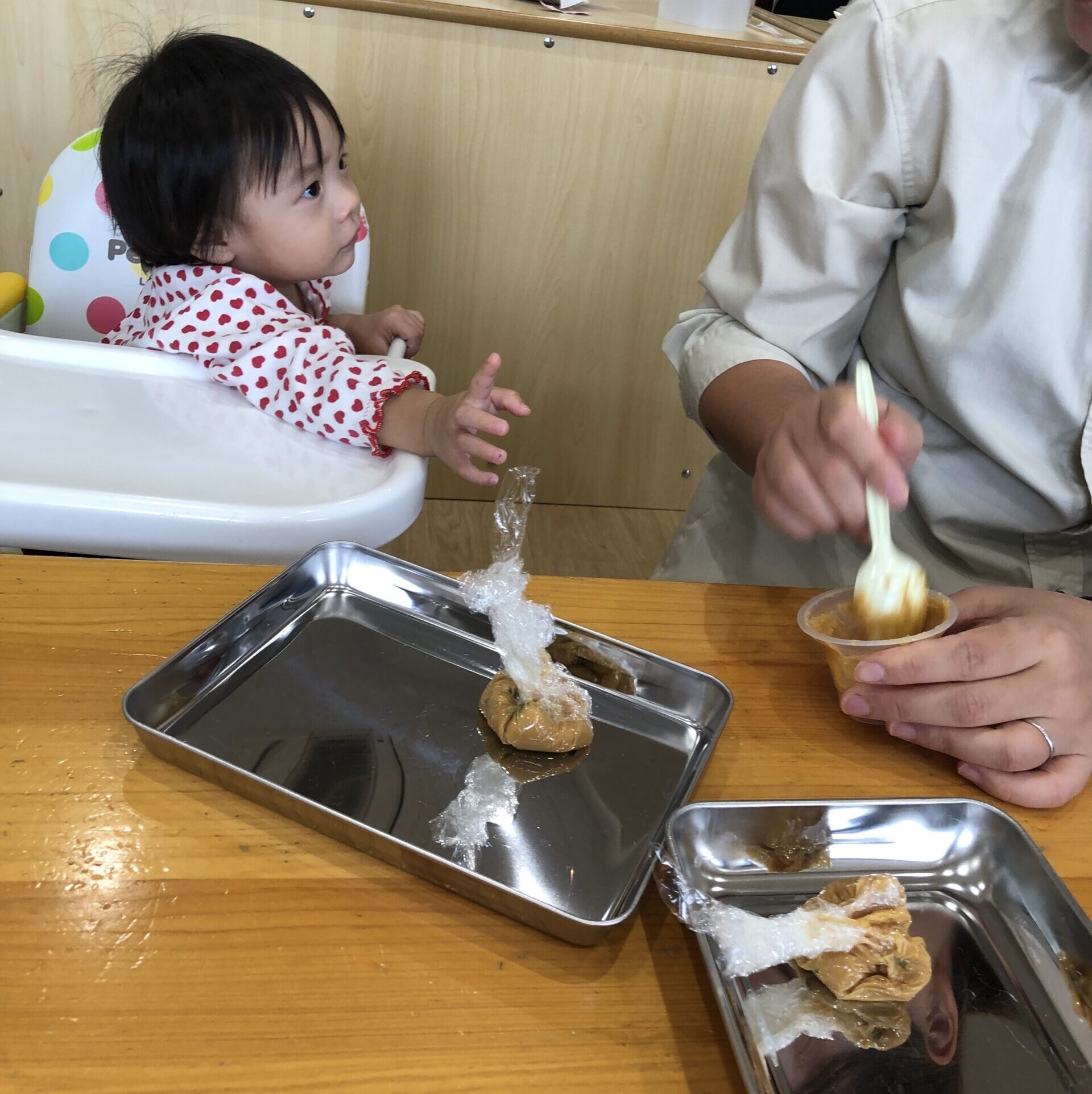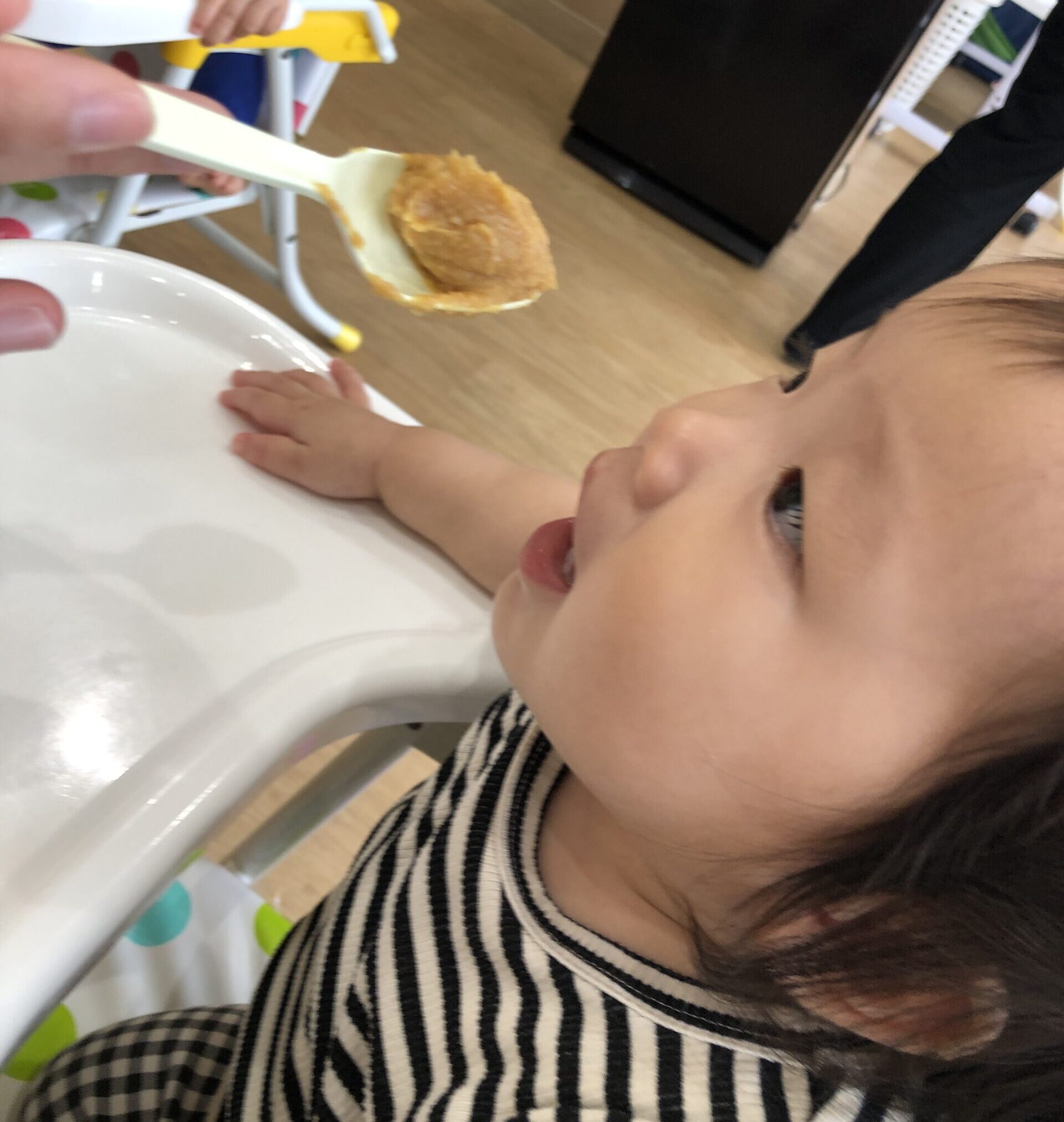 0歳児さんも真似して、指でそっと味噌をつんつん。