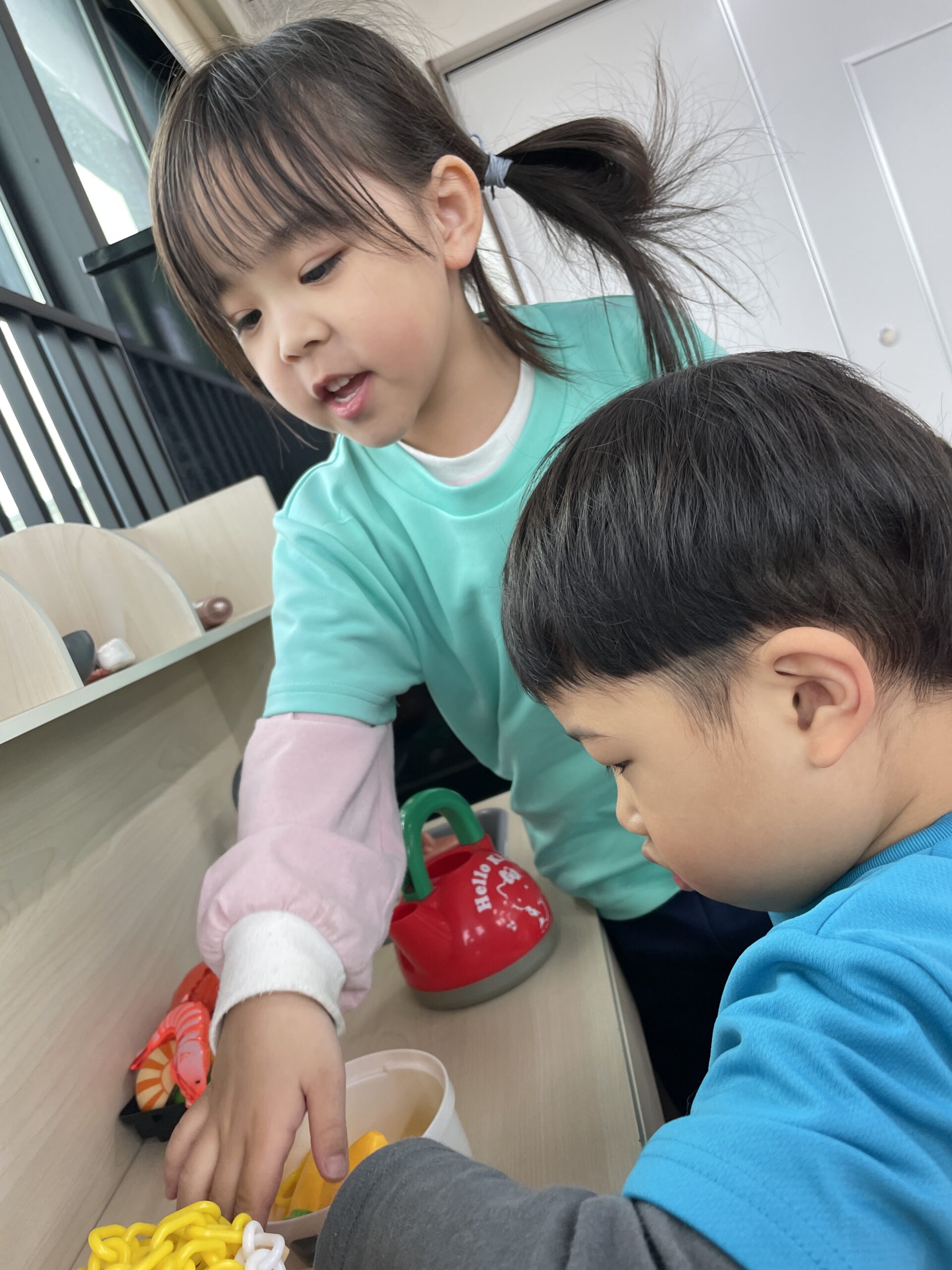 お人形遊びでは友だちと相談しながらどのお人形を使うかを話す場面もありました!