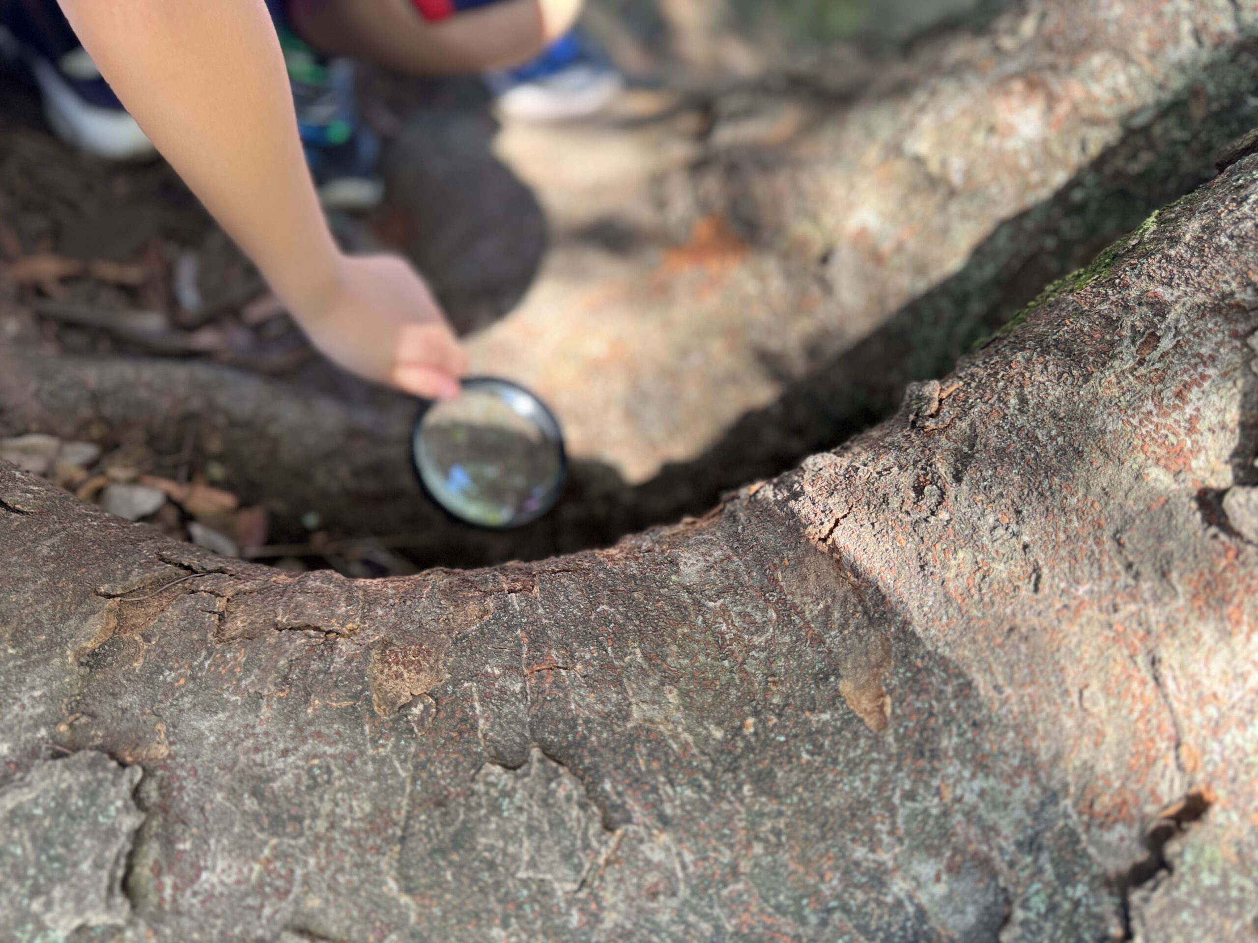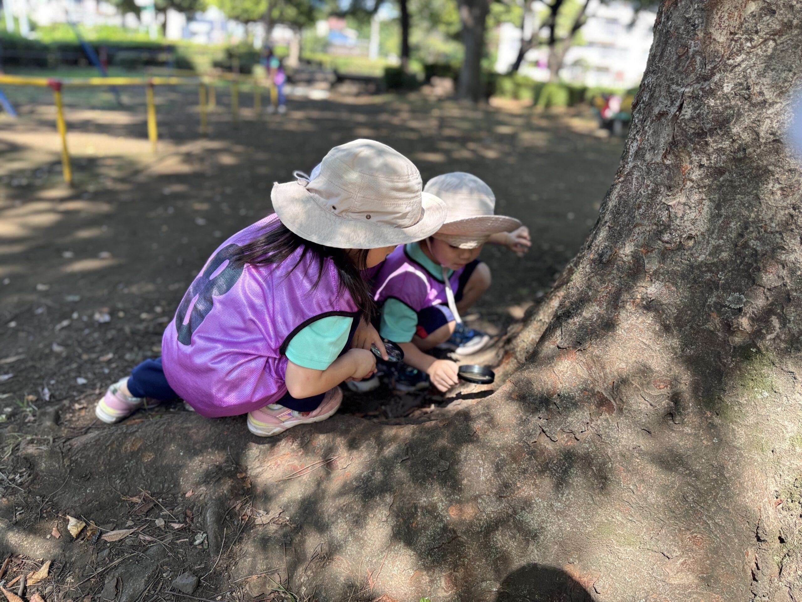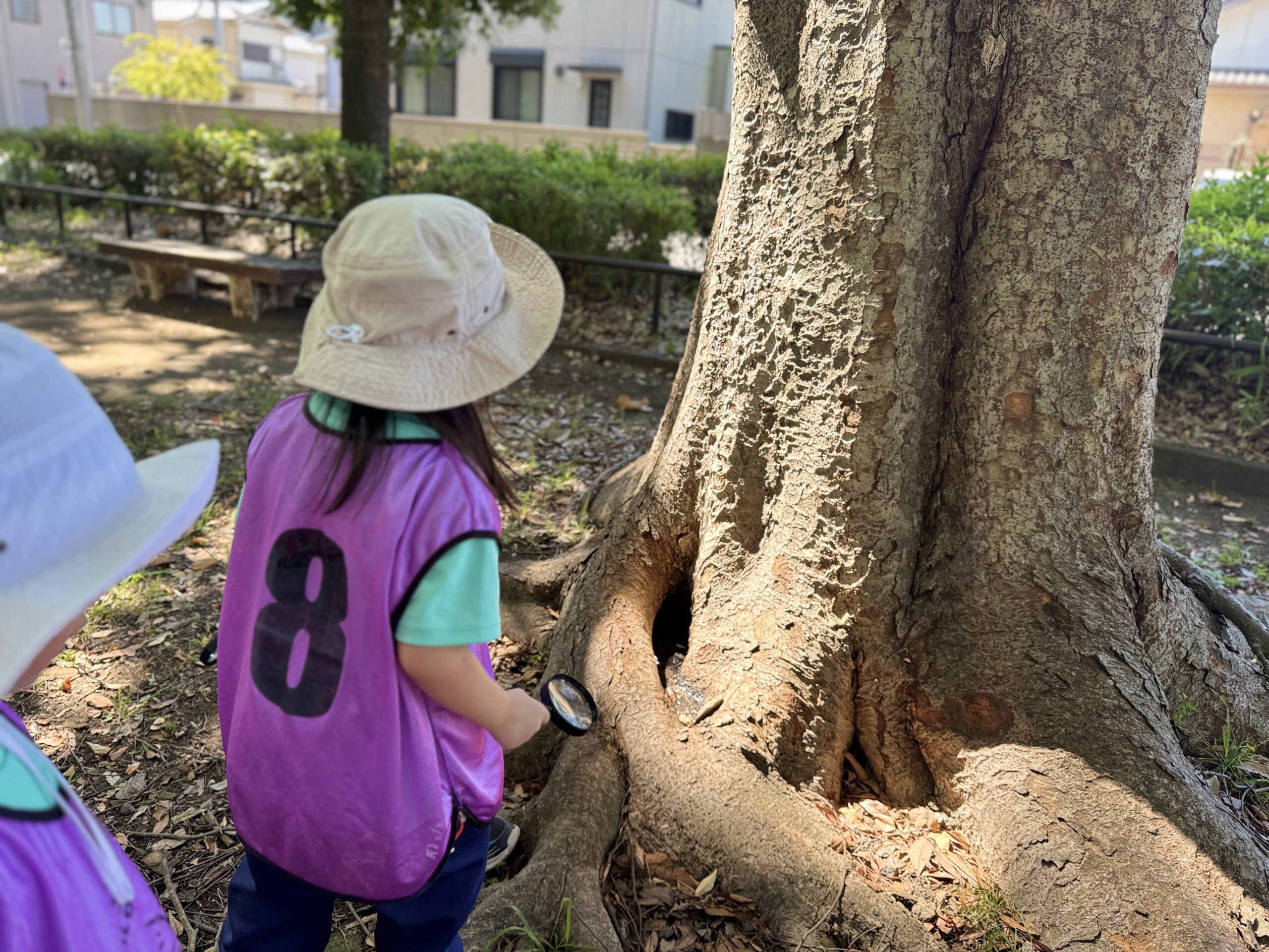 「何かみつかった?」先生が問いかけるとじっと見た後に「大きな蟻がいた!」よく見ると確かにとても大きな蟻がいました。