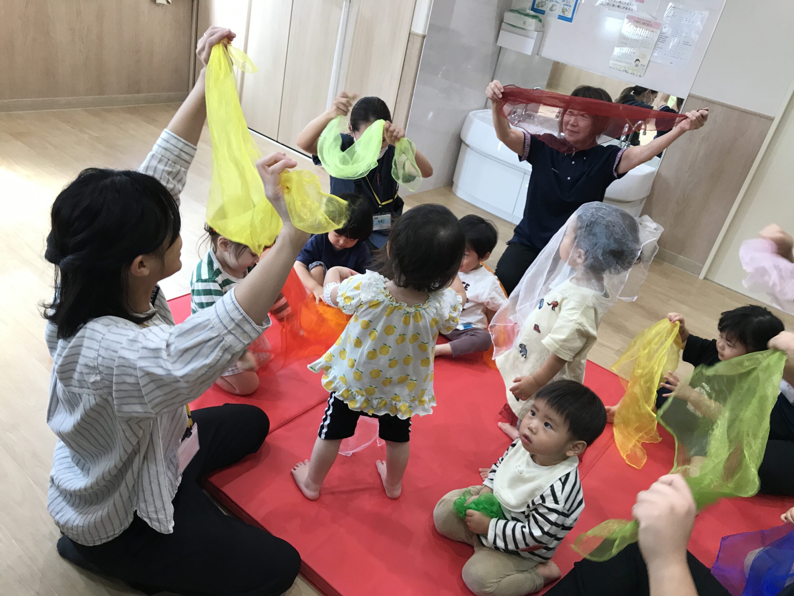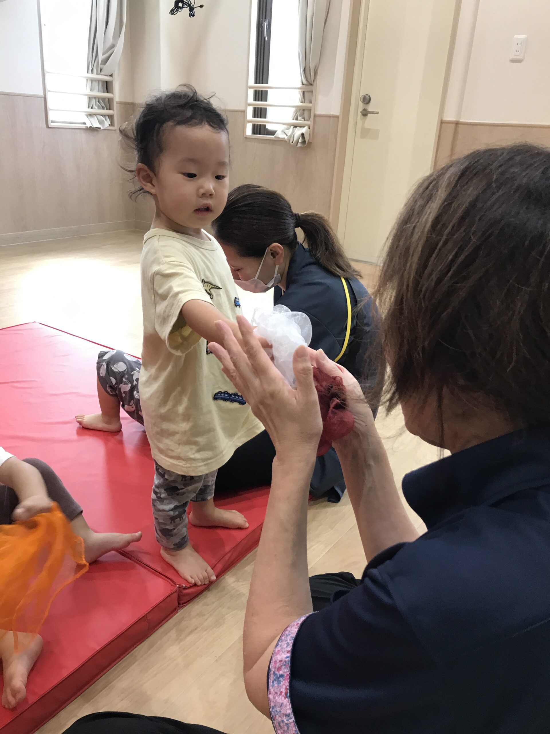 スカーフでぺったんぺったん!拍子やテンポ感を感じてお餅つき!