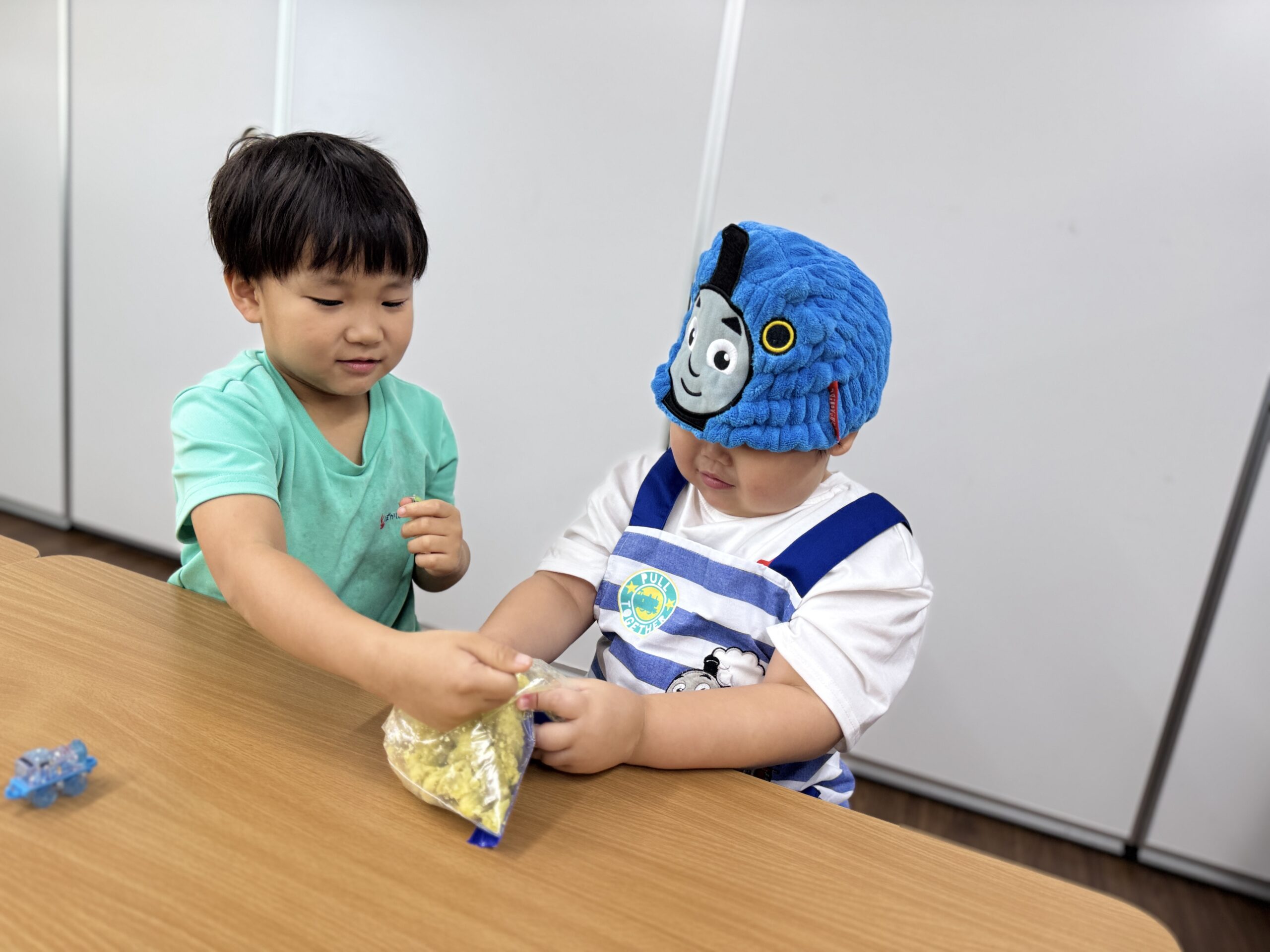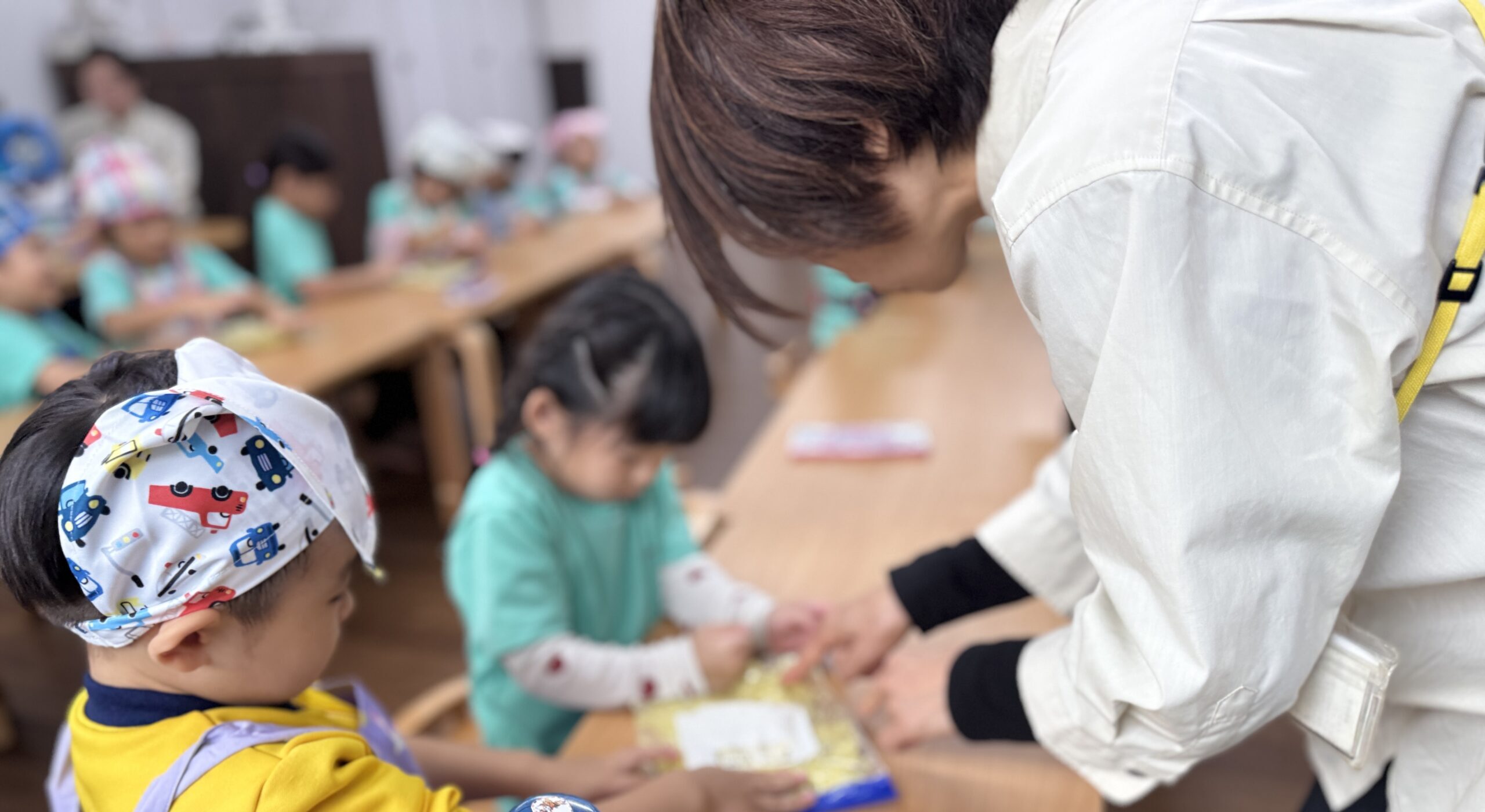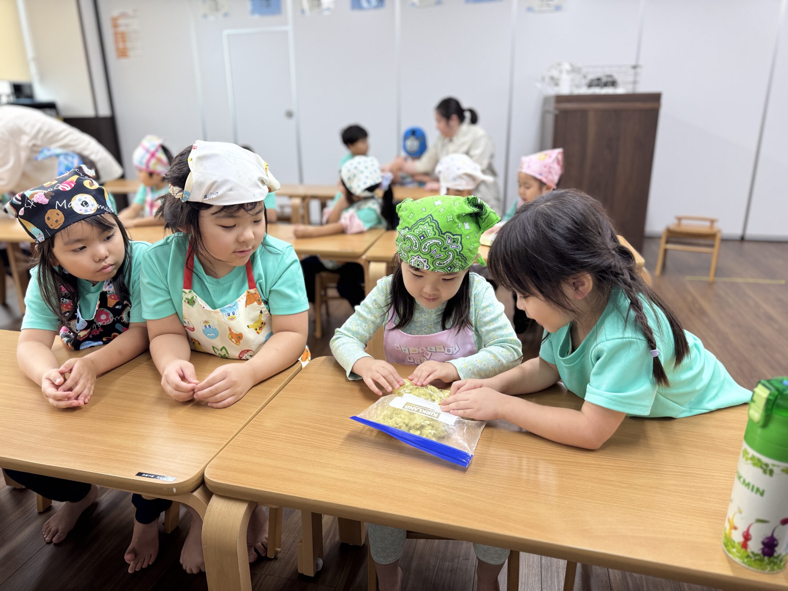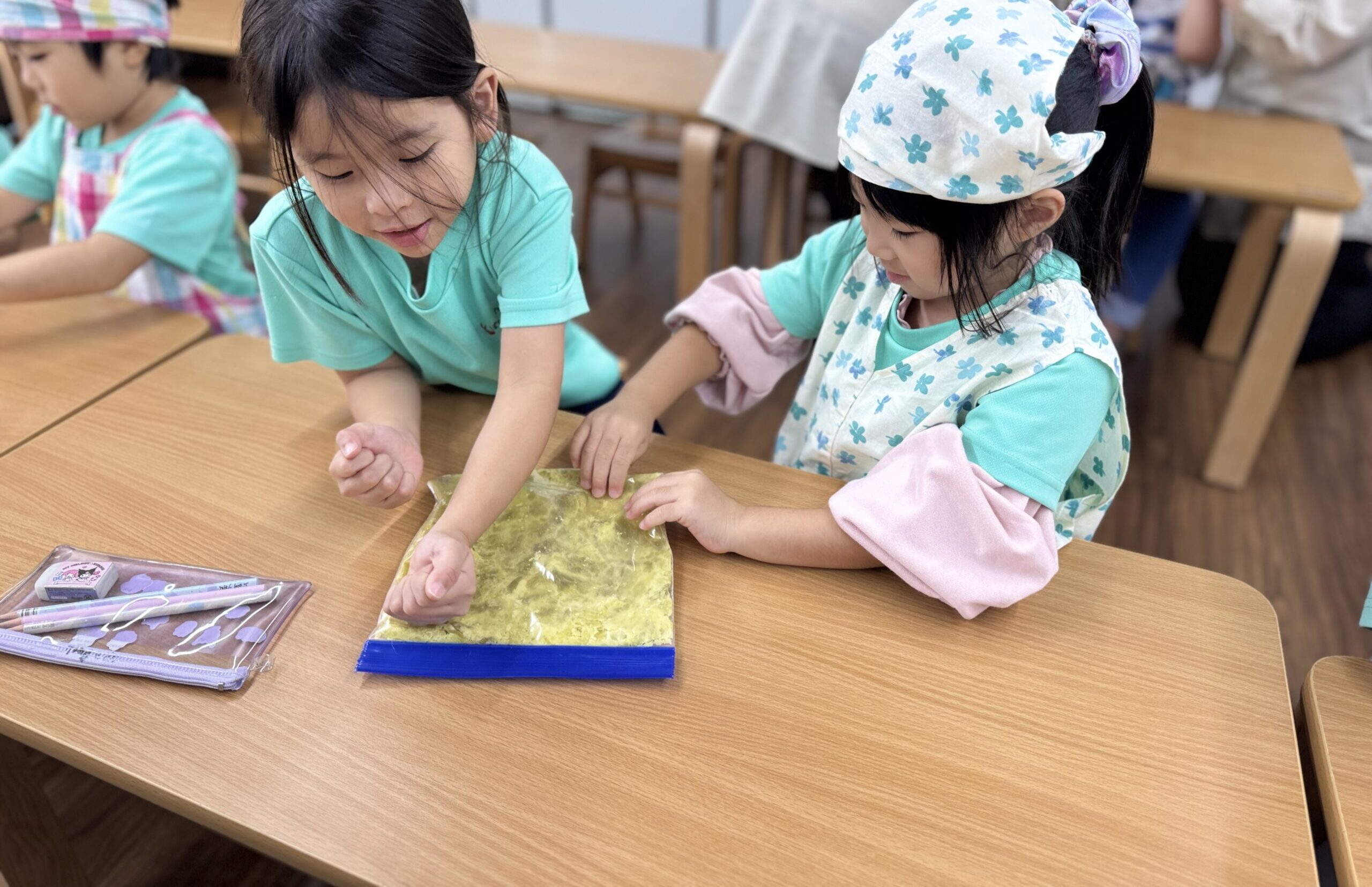 「おやつのスイートポテト楽しみにしててね!」「やったー!」嬉しそうな表情の子どもたちでした♡