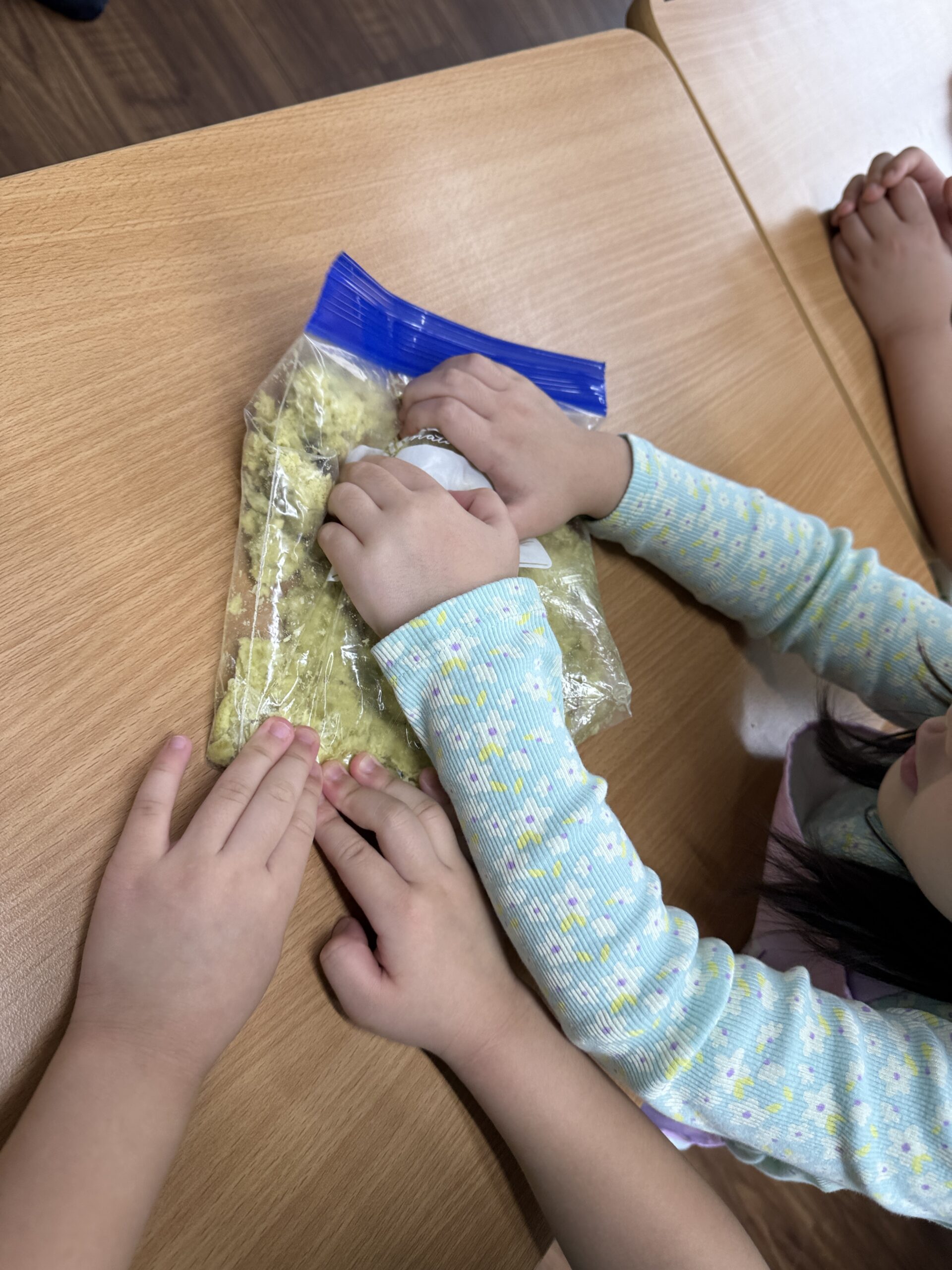いよいよスタート!ジップロックに入っているさつまいもを丁寧に潰していきます。