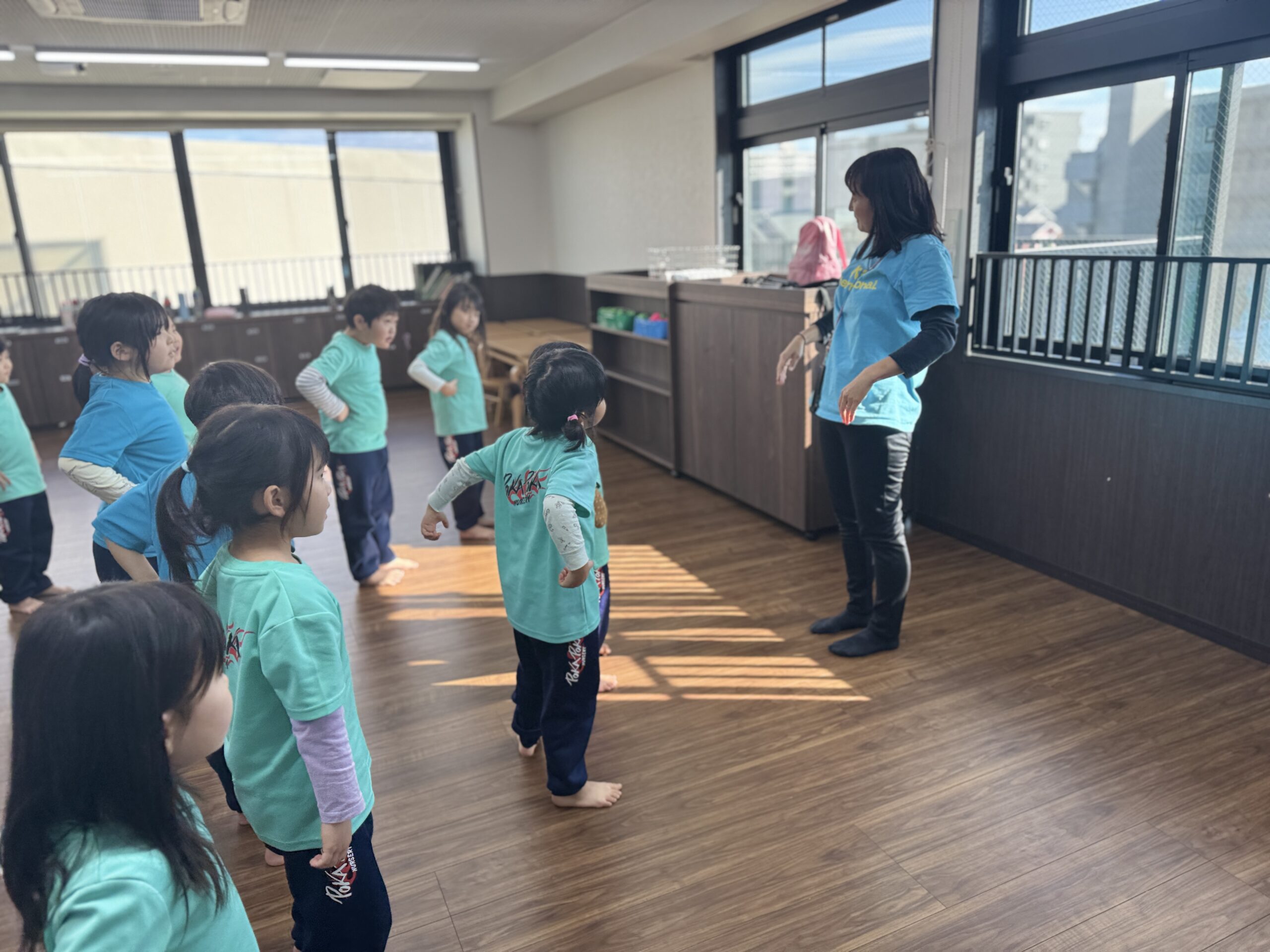 ステップを踏んで移動する姿も、複雑な振り付けを踊る姿も、以前に比べて格段にスムーズで、力強く、そして美しくなってきました。子どもたちの指先まで意識した動きや、表情豊かな表現には、私たち保育者も驚かされるばかりです。「ここはこうだったよね!」と、お友だち同士で確認し合いながら、最後まで集中して、どの動きも諦めずに取り組むことができていました。この「秘密の特訓」を通じて、子どもたちは単にダンスが上手になるだけでなく、困難なことにも粘り強く挑戦する力や、表現する喜びを深く学んでいます。