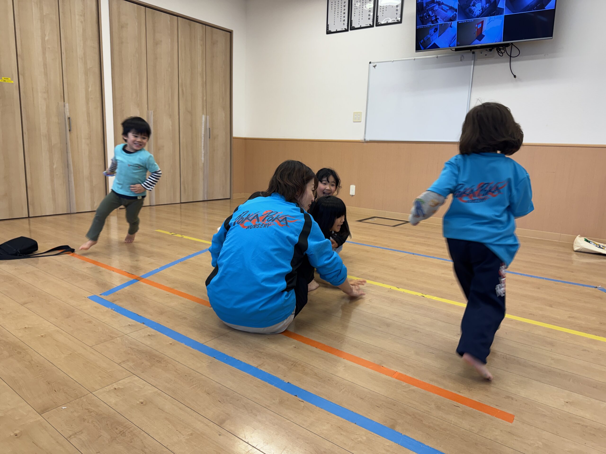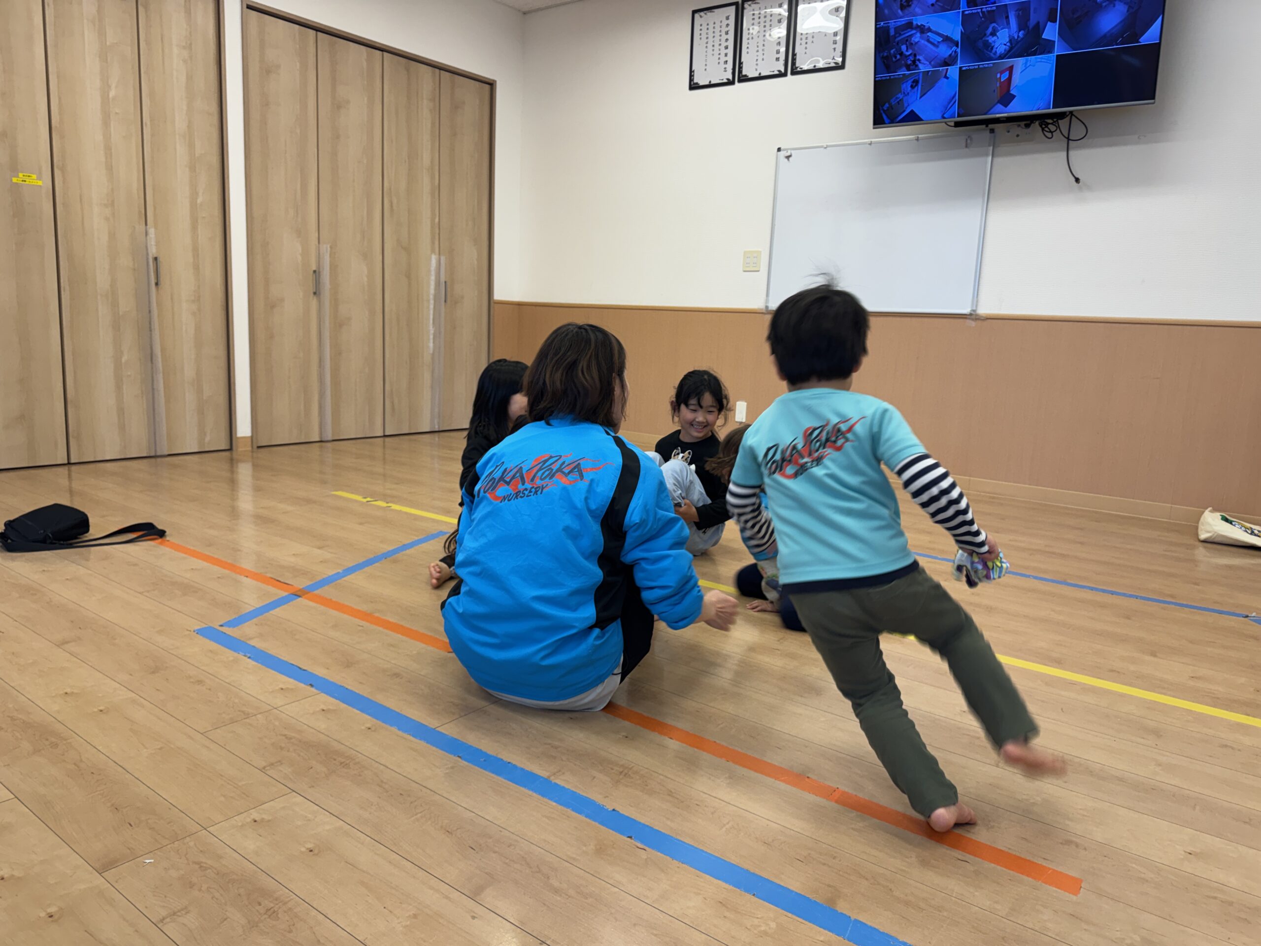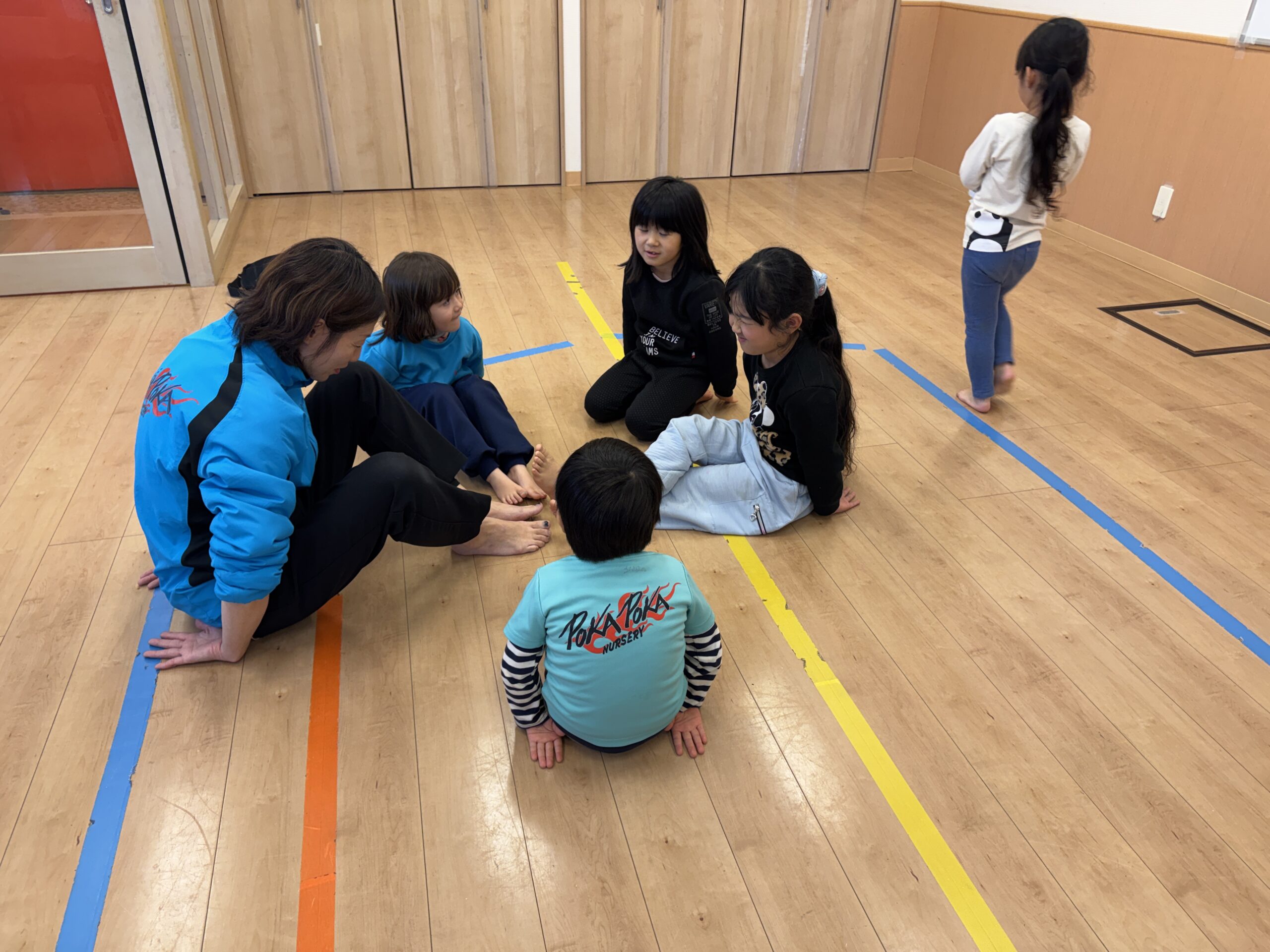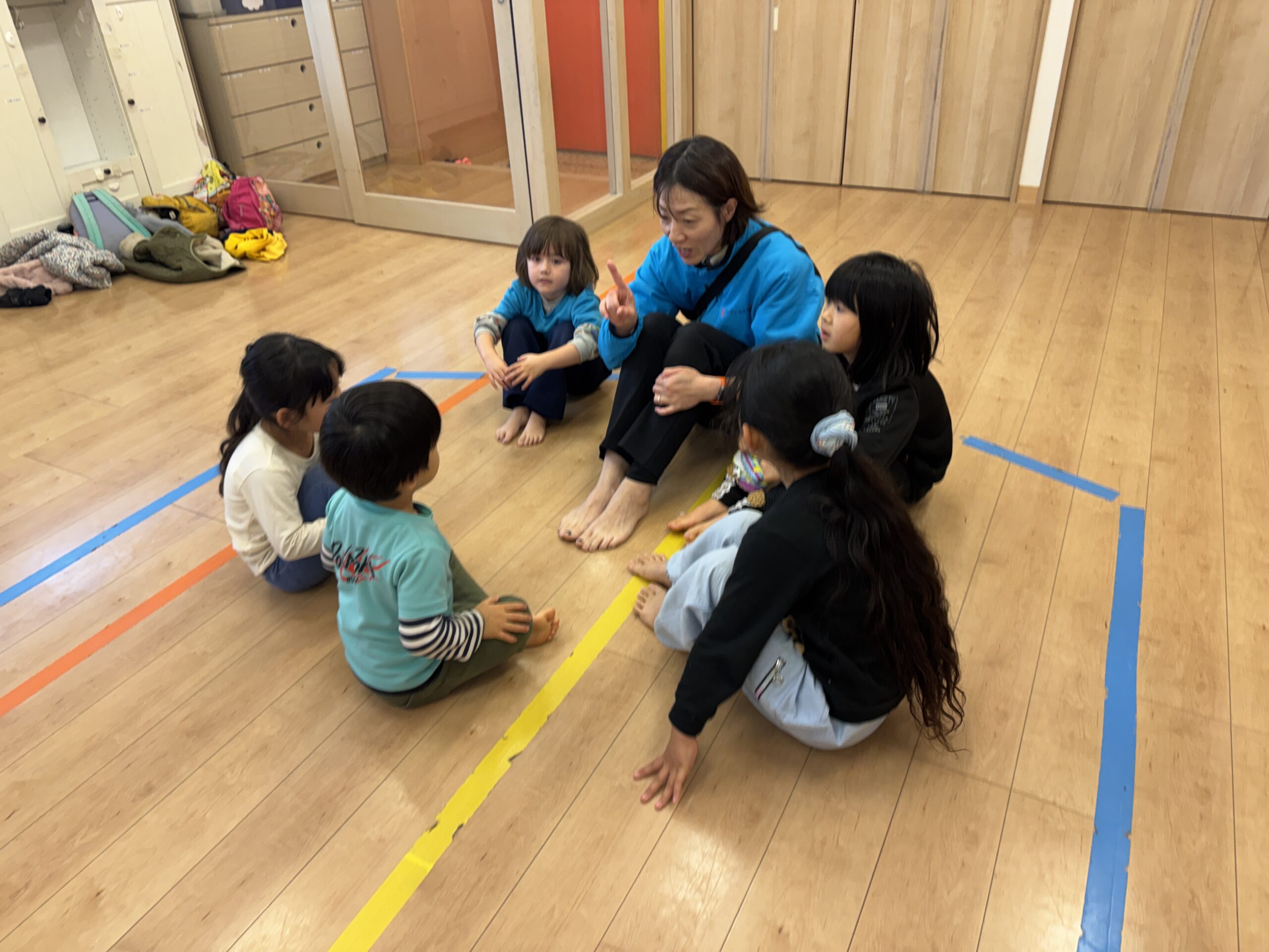 給食までは、ハンカチ落としをして盛り上がった!ルールを知らないお友だちには先生がしっかり教えてくれたから、縦割りのお友だちでも勝ったり負けたり楽しく過ごすことができたよ♪