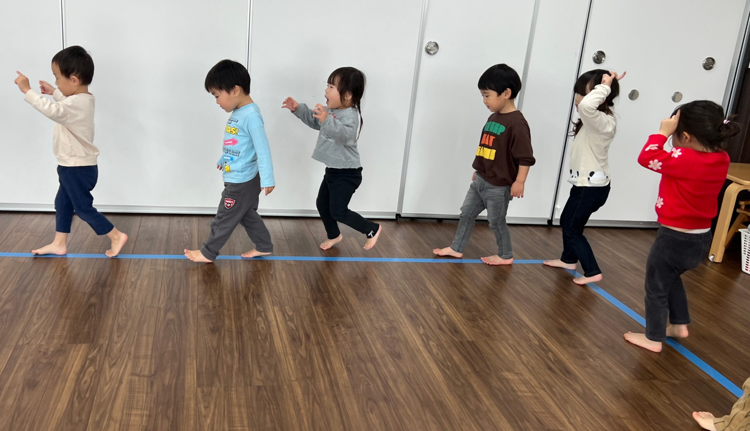 ピアノをよく聞いて、特にそっと歩く動きは自分の力をコントロールしながら動くことが出来ました♪