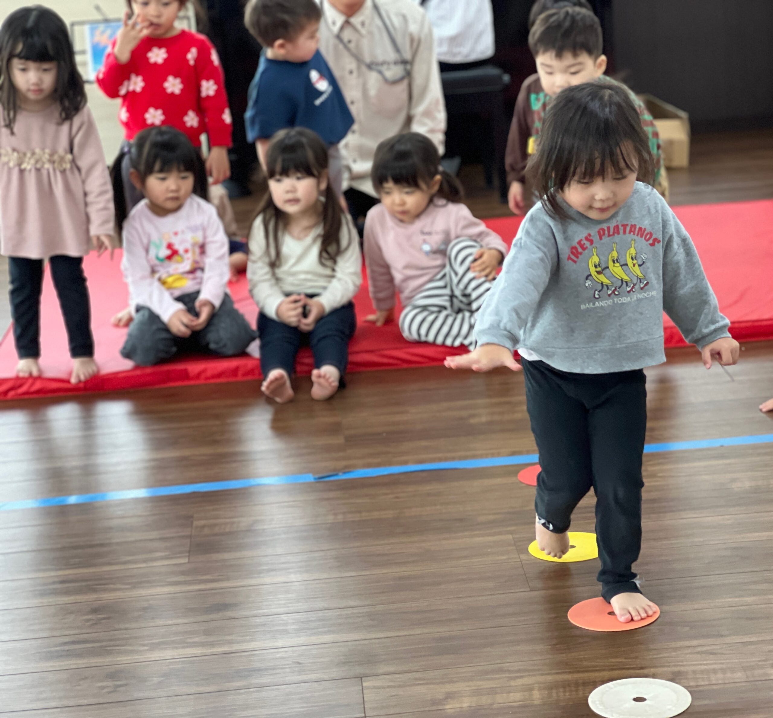 順番にお星さまの道を歩き、お友達と譲り合って楽器を鳴らす様子が素敵でした☆
