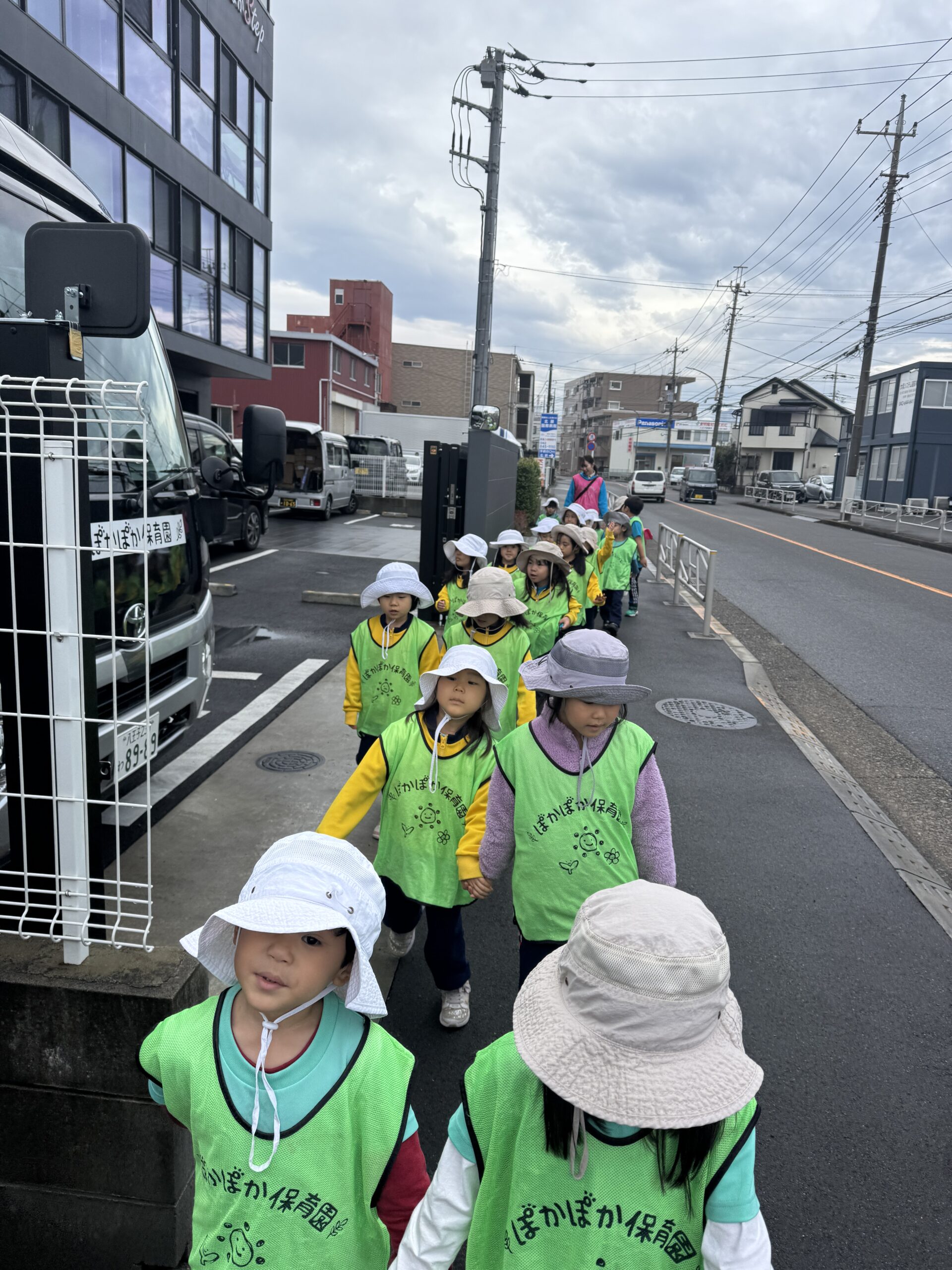 お兄さんお姉さんが、3歳のお友だちの手を優しく引いてあげる姿が見られました。みんなで歩くことで、