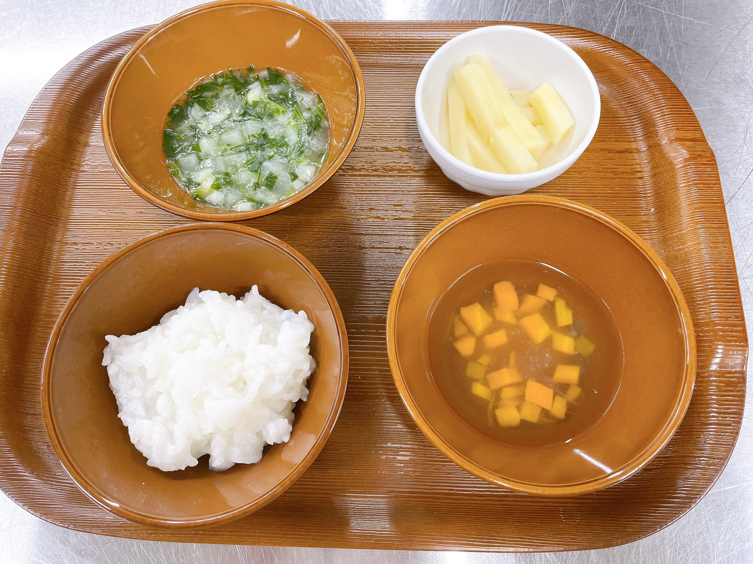国産米をふっくら炊飯し、粒感を大切に仕上げました。つやのあるご飯は子どもの咀嚼力アップにつながります。