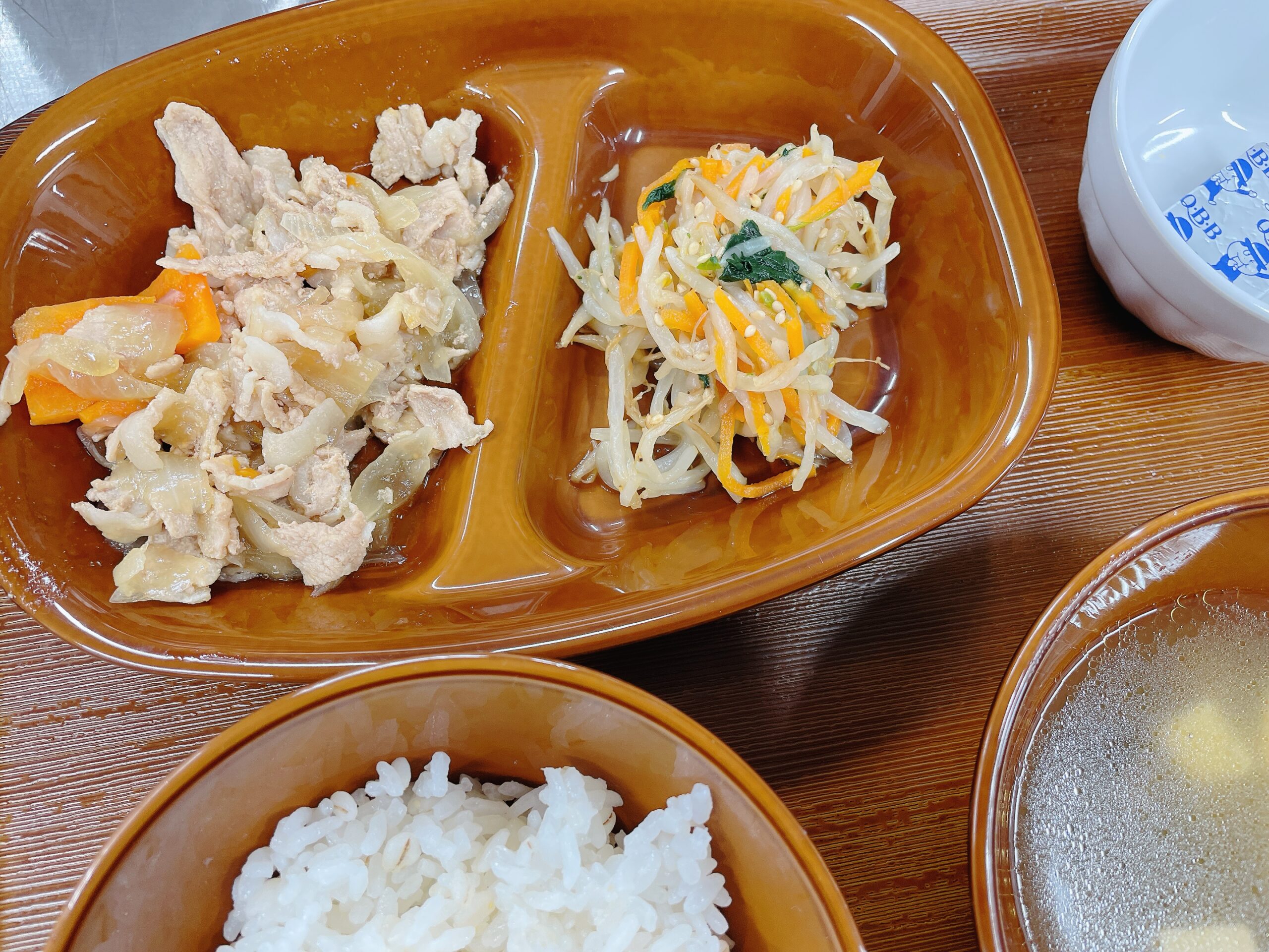 玉ねぎと人参、そして豚肉をじっくり炒め、玉ねぎの甘みをしっかり引き出しています。甘辛いタレがご飯とよく合い、子どもたちは自分でご飯にのせながら「おいしい!」と笑顔いっぱい。パワフルに箸を動かしていました。
