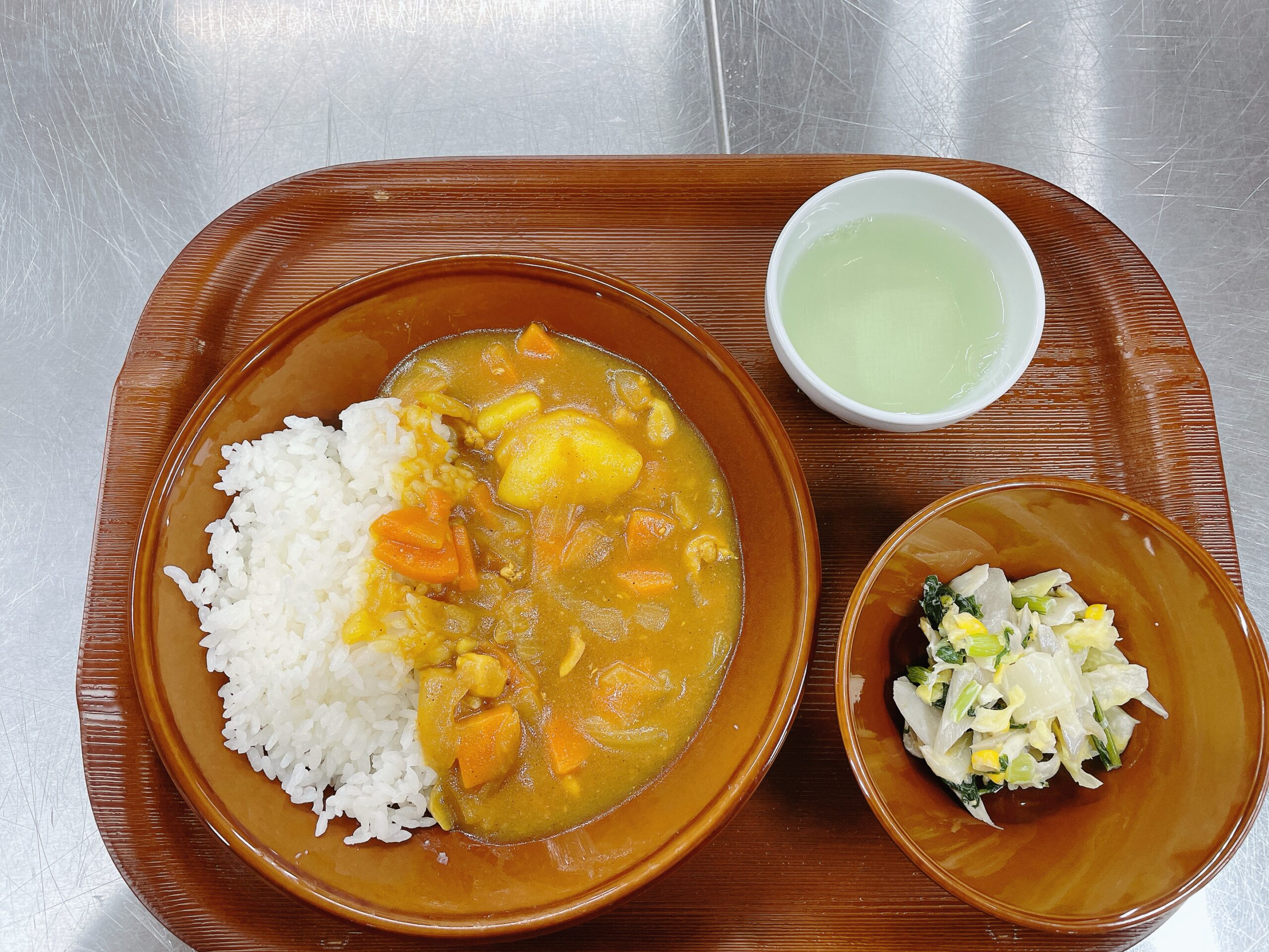 ごぼうは下茹でしてから細切りにし、歯ごたえを残しつつも食べやすい仕上がりに。白菜と小松菜の緑、コーンの鮮やかな黄色を組み合わせた彩り豊かなサラダには、マヨネーズベースのドレッシングで子どもたちもパクパク食べやすい一品。「サラダもおいしい!」と野菜が苦手な子も完食していました。