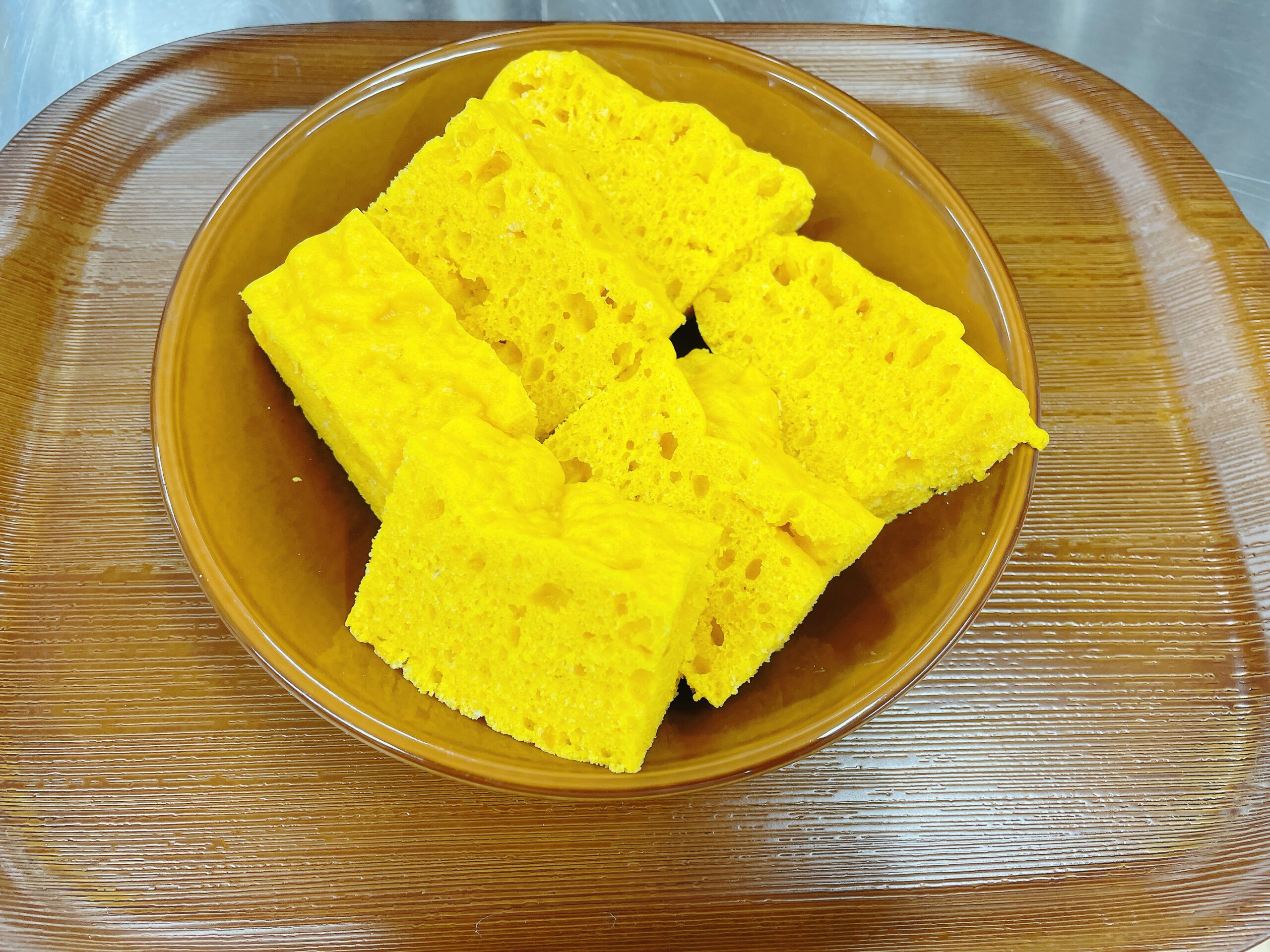 彩り豊かな黄色パプリカのほか、キャベツ、もやしを油少なめでシャキッと炒め、ごま油で風味を添えました。野菜の甘みとパプリカの鮮やかな色合いに、子どもたちが興味津々。「パプリカ、きれい!」と笑顔でパクパク完食です。
