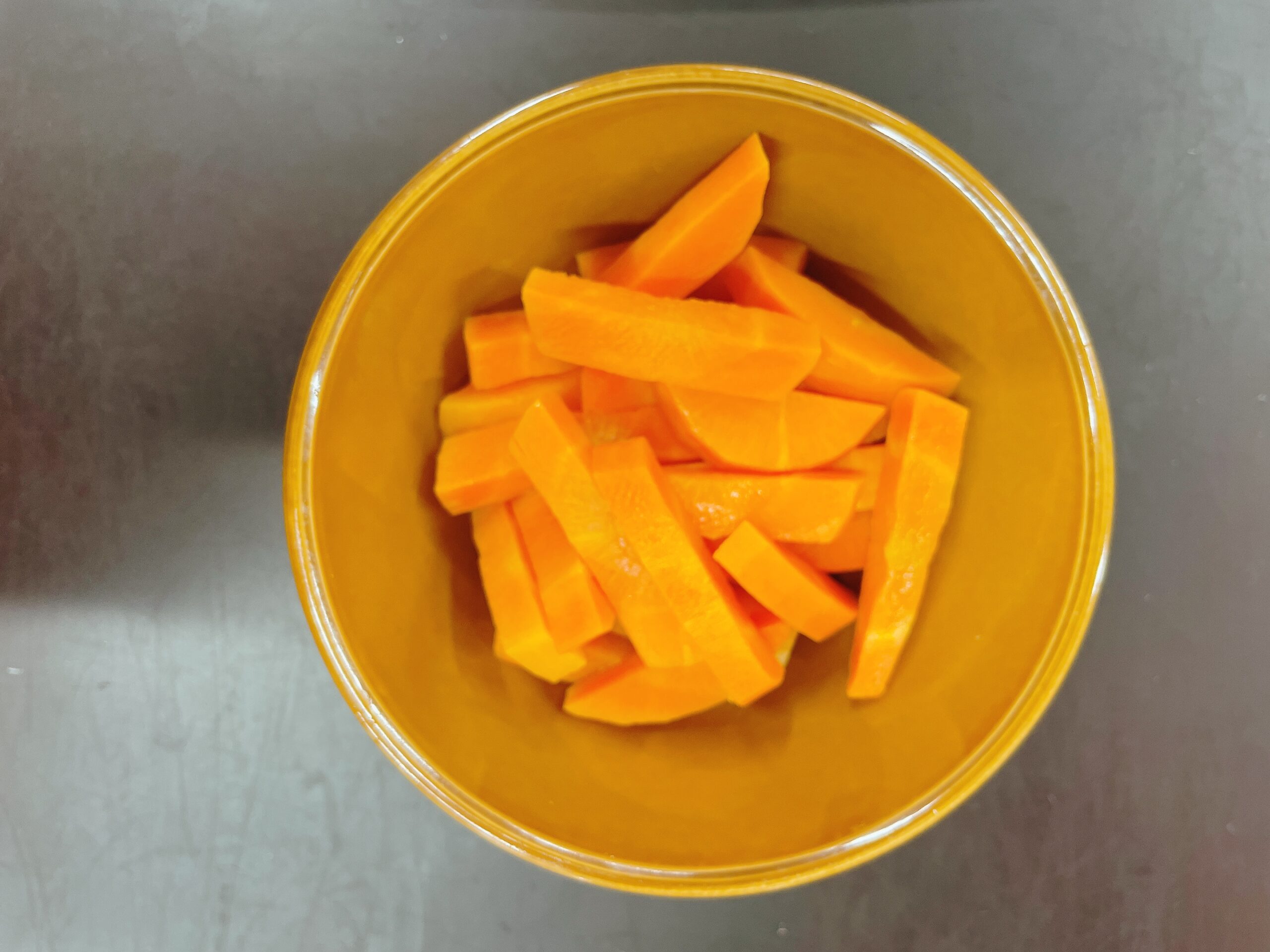 白菜、きゅうり、人参を食べやすい大きさに切り、茹でた後に塩昆布で和えました。ほどよい塩気と昆布の旨みが野菜の甘みを引き立て、「野菜もおいしいね!」と子どもたちが挑戦する姿に、食育の大切さを実感しました。