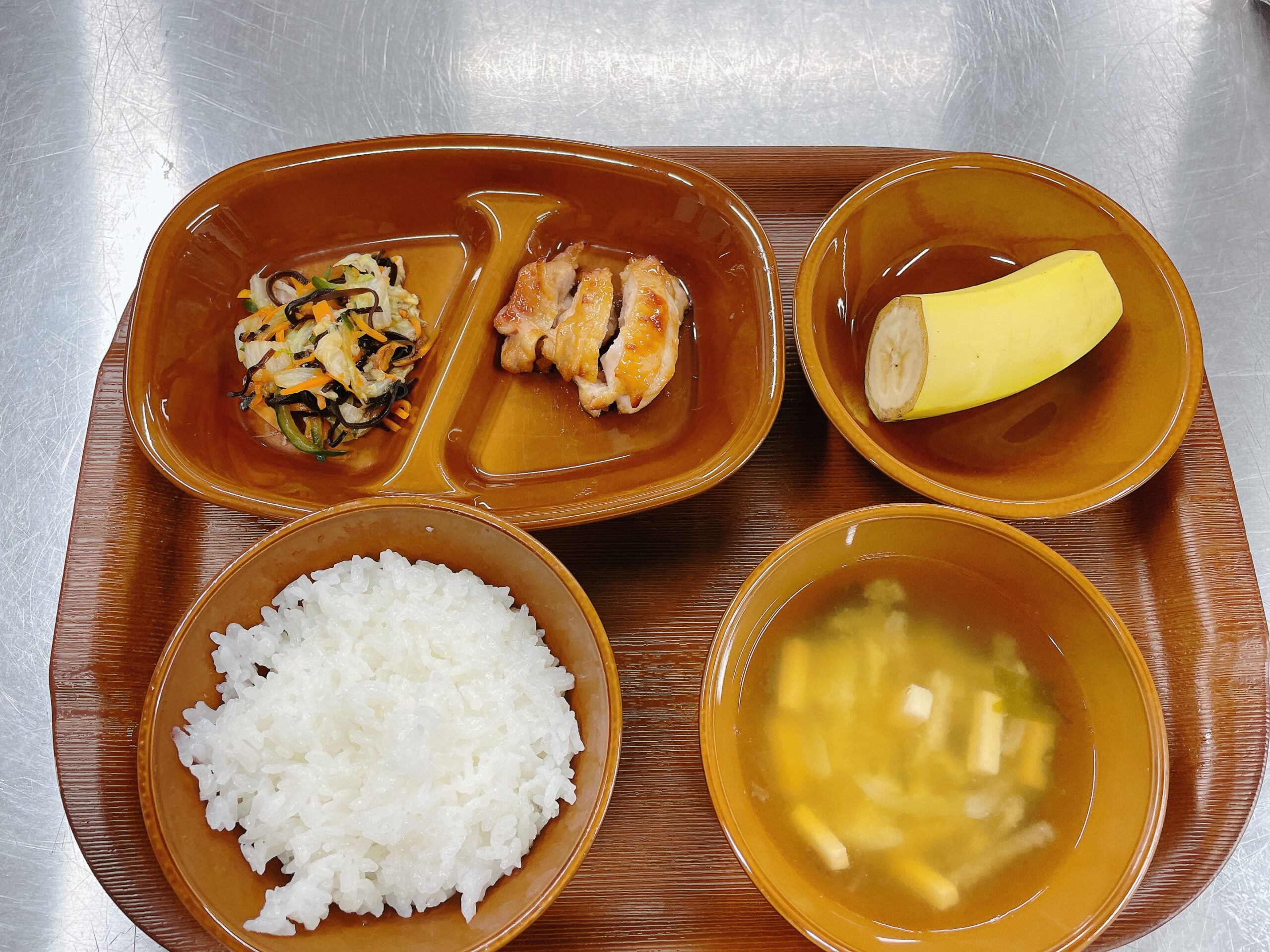 デザートはビタミンCが豊富なバナナ。手でむきやすく、そのままパクリと頬張る楽しさがあります。「バナナだいすき!」という元気な声で、おやつタイムも賑やかになりました。
