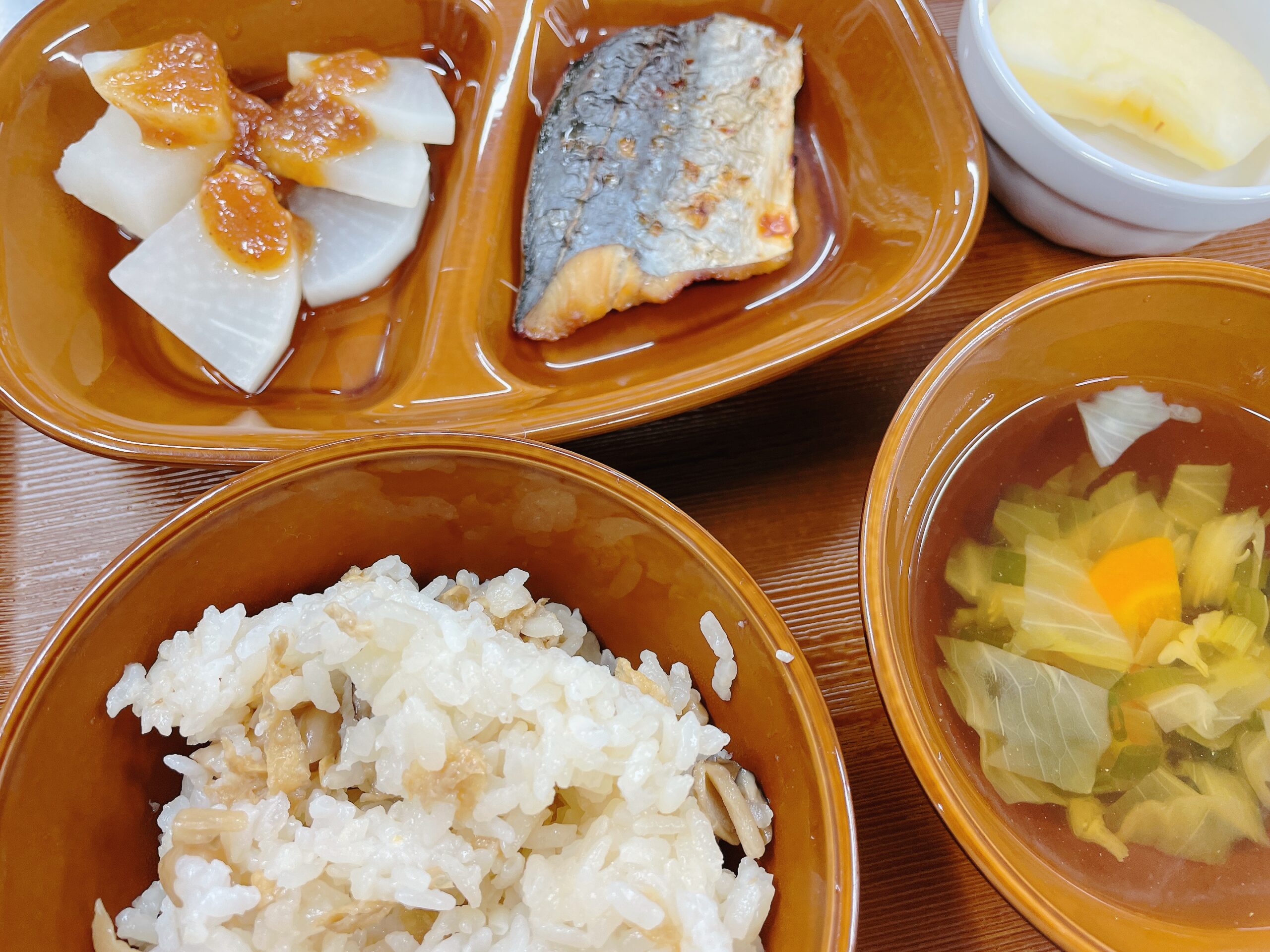 塩味控えめのだしで仕上げたすまし汁には、彩り豊かな人参とシャキシャキのキャベツ、万能ねぎをたっぷり。野菜の旨みが溶け出した優しい味わいに、子どもたちからは「スープもう一杯!」の声が飛び交いました。
