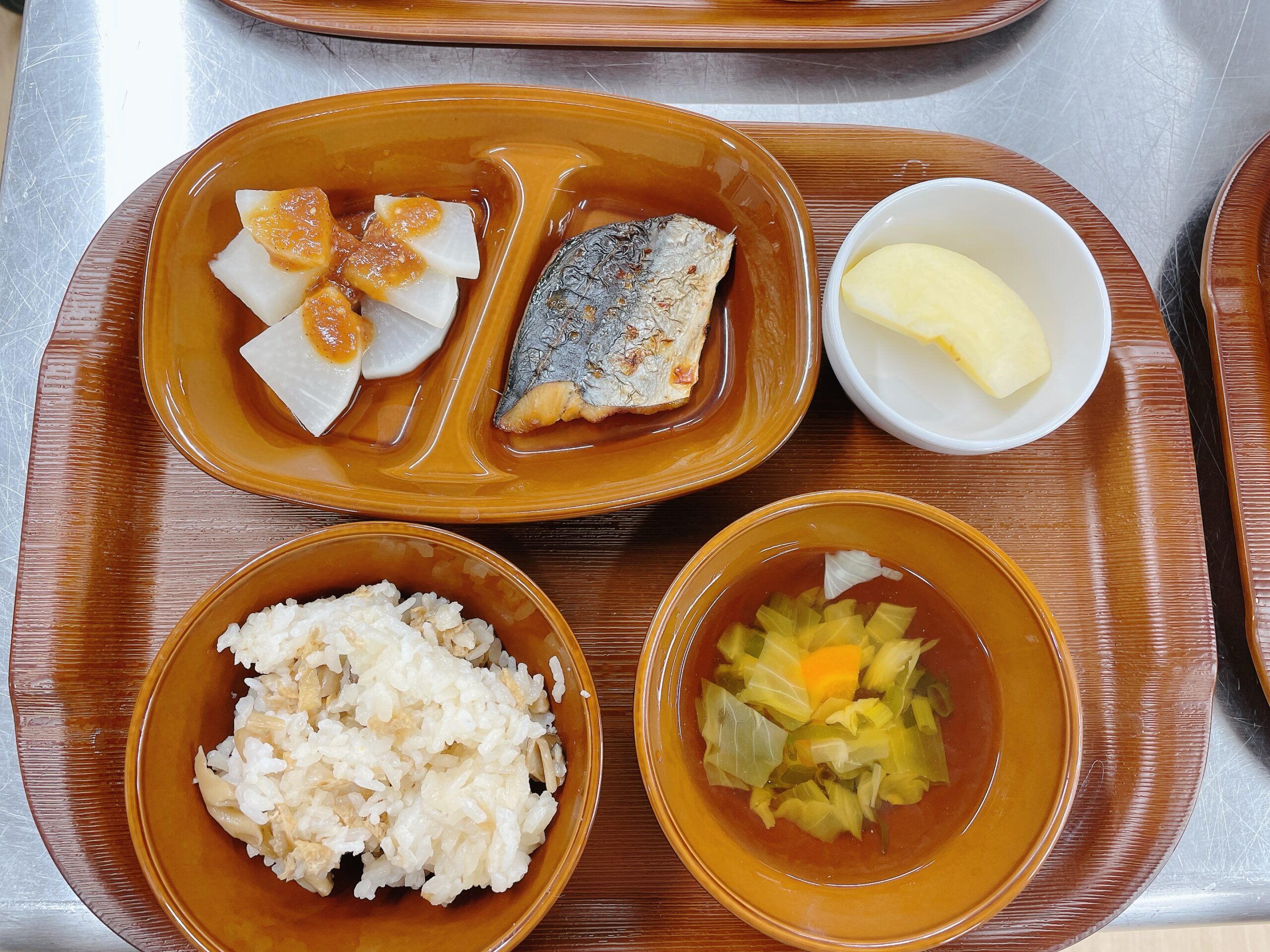 まいたけ・しめじ・エリンギの三種のきのこを、醤油ベースのだしでじっくり炊き上げました。炊きあがったご飯にきのこを混ぜ込むと、ふんわり香る秋の風味が広がります。「きのこの歌♪」を歌いながら、子どもたちは宝探しのようにきのこを探し、「あった!」「おいしい!」と嬉しそうに頬張っていました。