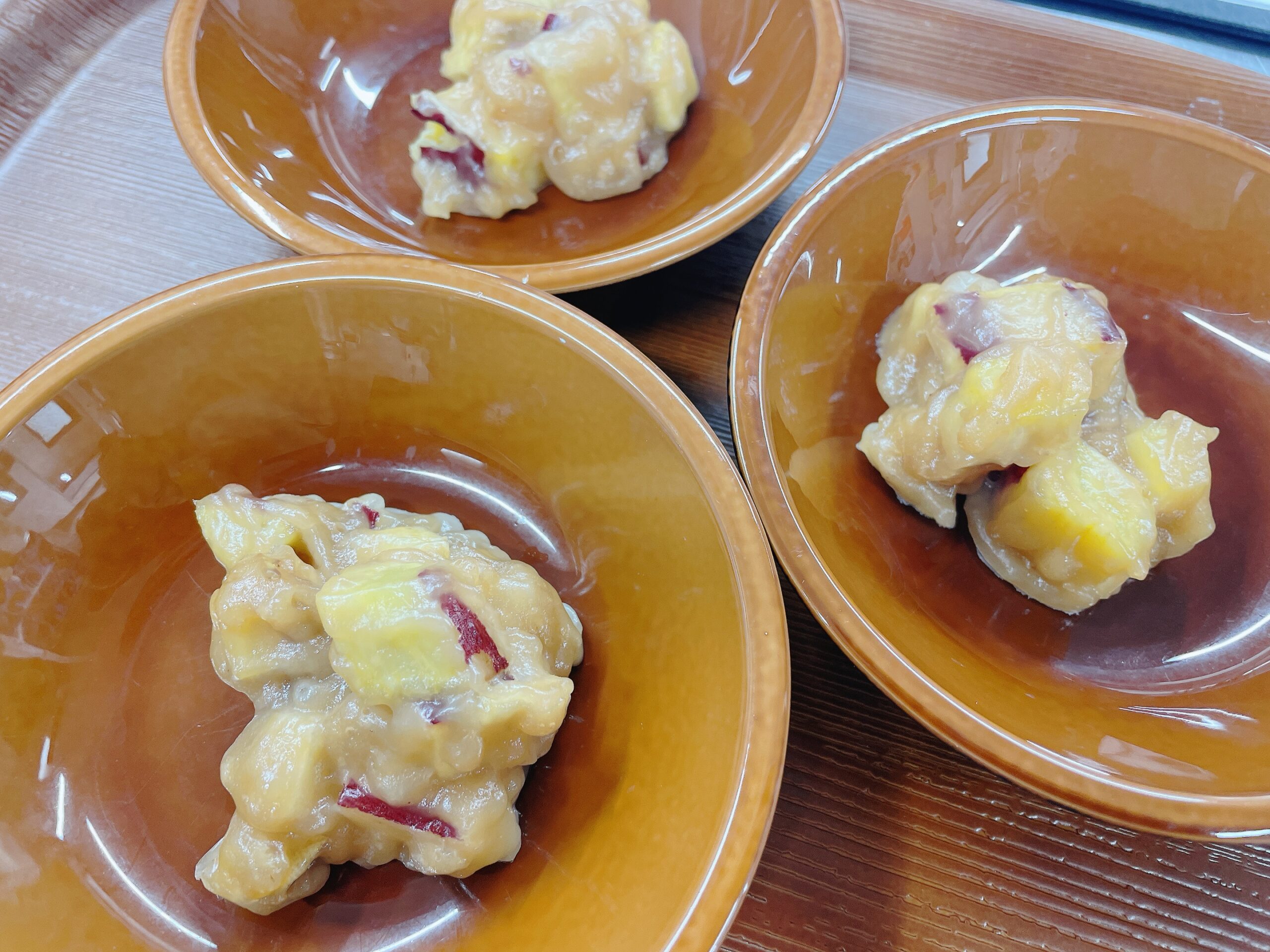 ごぼう、大根、人参と根菜たっぷりの汁物です。ごぼうは繊維が硬くならないよう長時間じっくり茹で、甘みと旨みを引き出しました。根菜のやわらかい食感に、子どもたちからは「またおかわりしたい!」という声が続出。寒い朝でも体の芯からぽかぽか温まります。