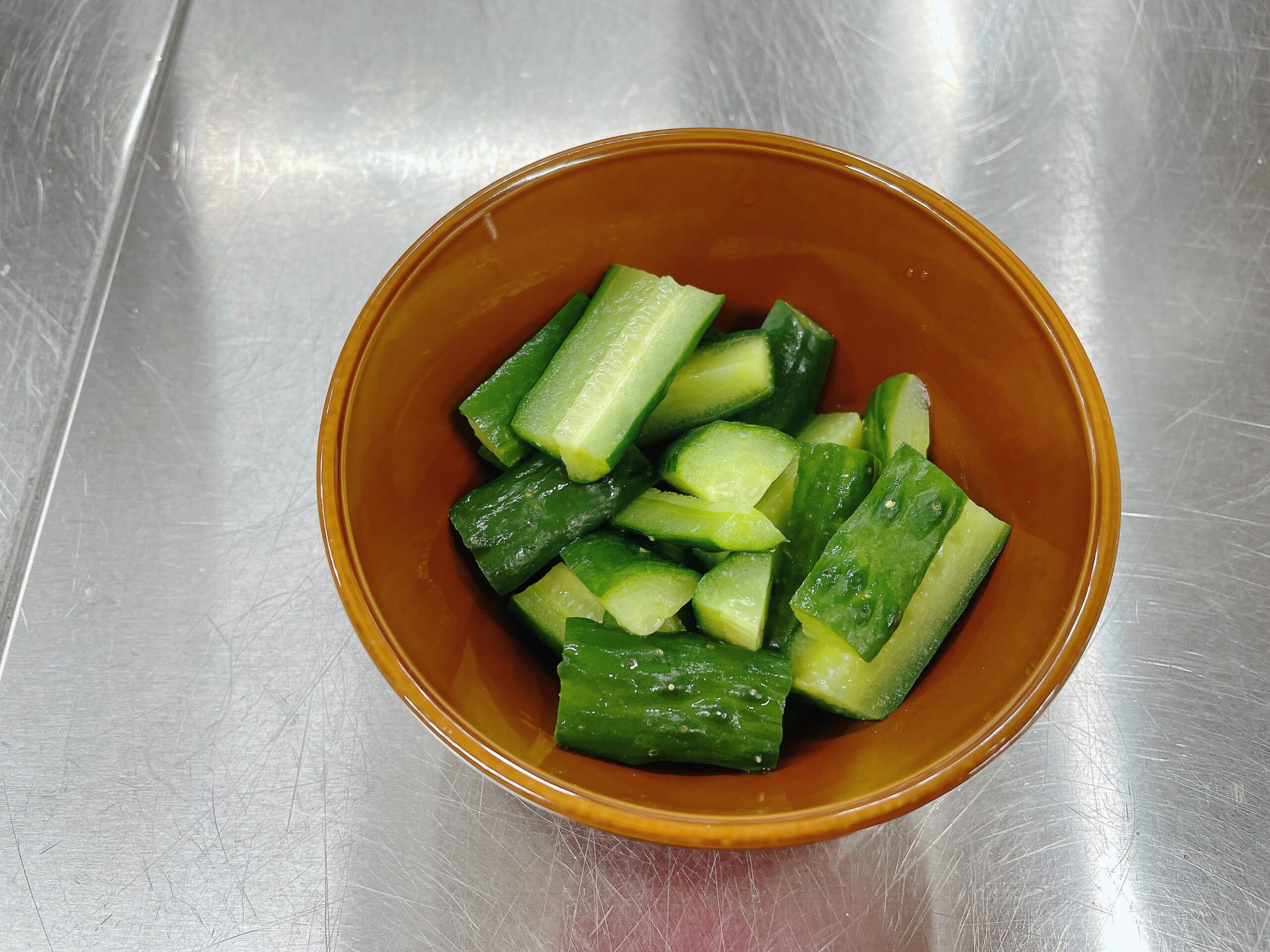 彩り豊かな人参、大根、ブロッコリーをサッとゆで、自家製トマトドレッシングで和えました。酸味をほどよく飛ばし、野菜の甘みを引き立てた深い味わい。苦手な野菜にもチャレンジする子どもたちが増えています。