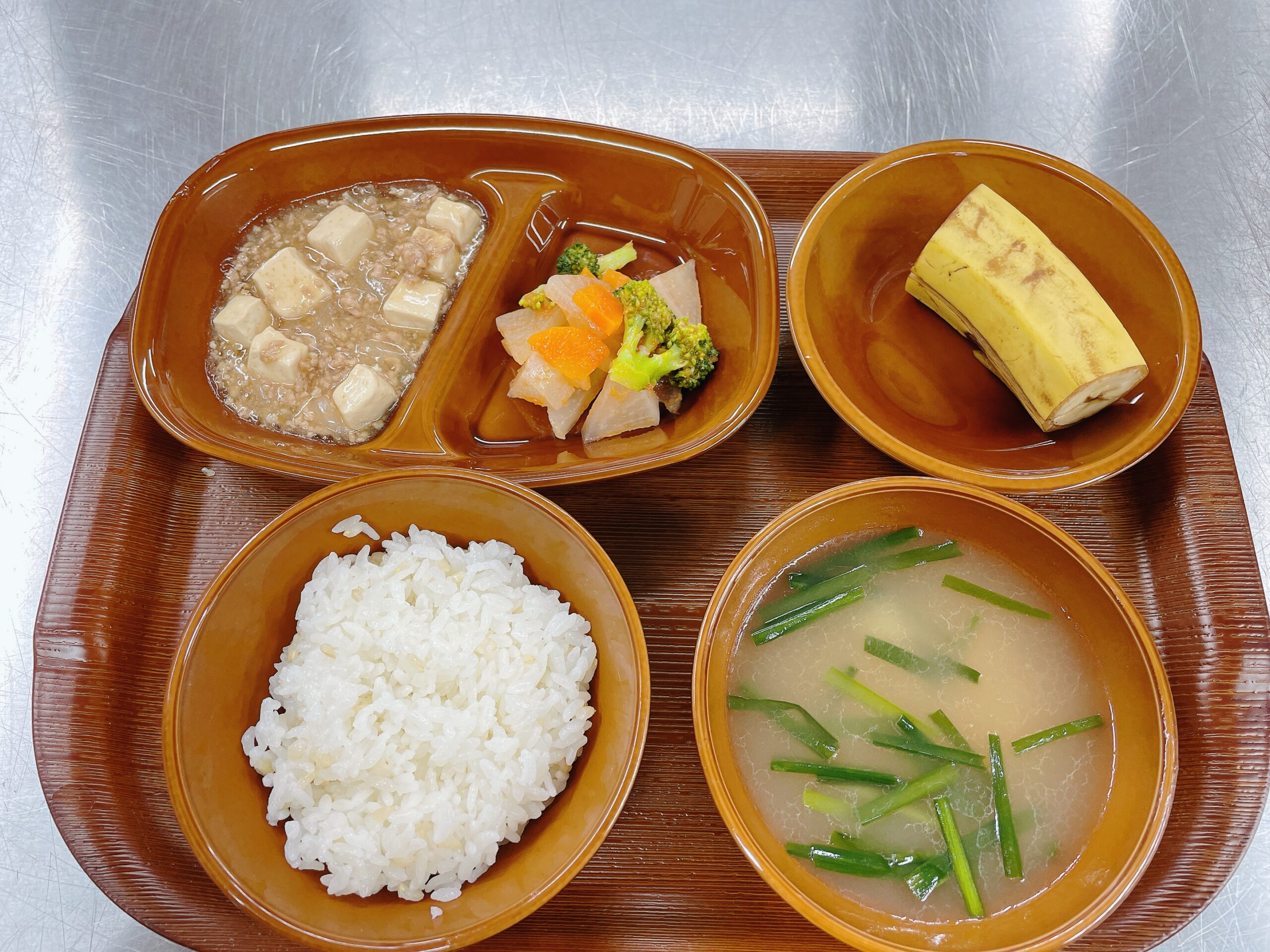 やわらかい豆腐を崩れないようそっと扱い、豚ひき肉と一緒にだし醤油でじっくり煮込みました。味がしっかり染み込んだ豆腐は「優しい味!」と大人気で、ご飯と一緒にパクパク食べる子どもが続出でした。