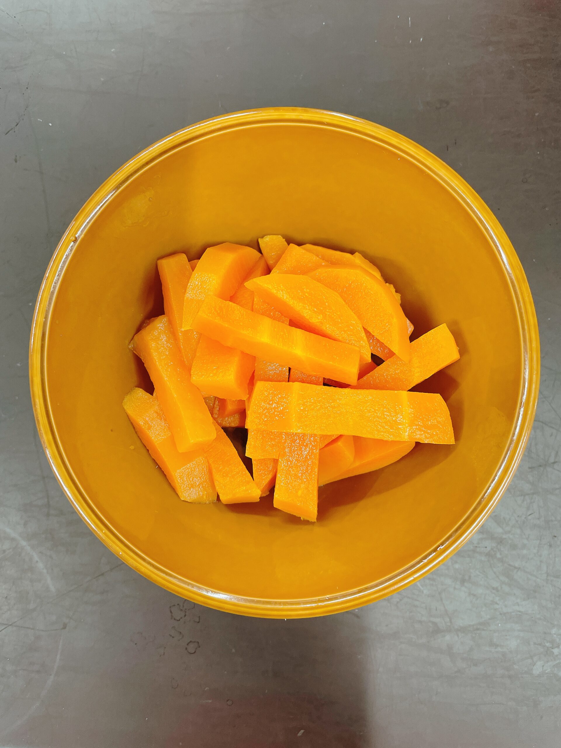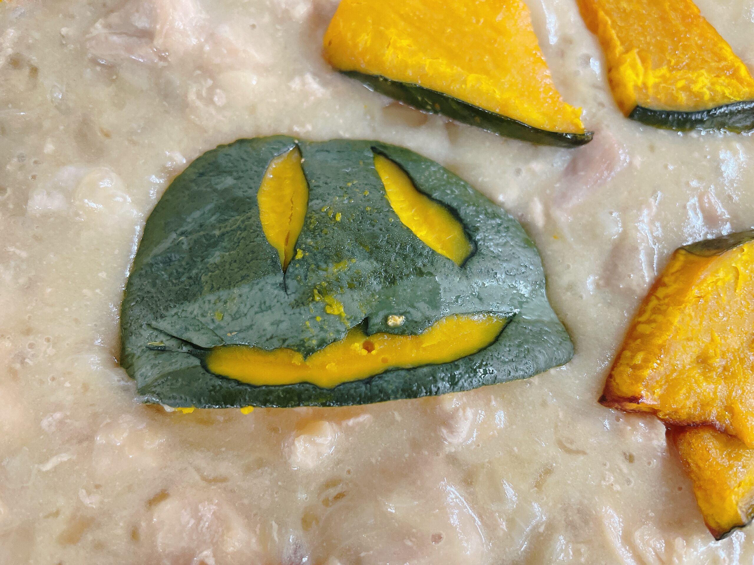 玉ねぎをしっかり炒めて甘みを引き出し、鶏肉を加えてさらに炒めたあと、豆乳とかぼちゃを入れて弱火で煮込むことで、クリーミーかつ優しい味わいに仕上げました。かぼちゃの自然な甘みが子どもにも大好評!「かぼちゃがとろける!」と笑顔で食べてくれました。