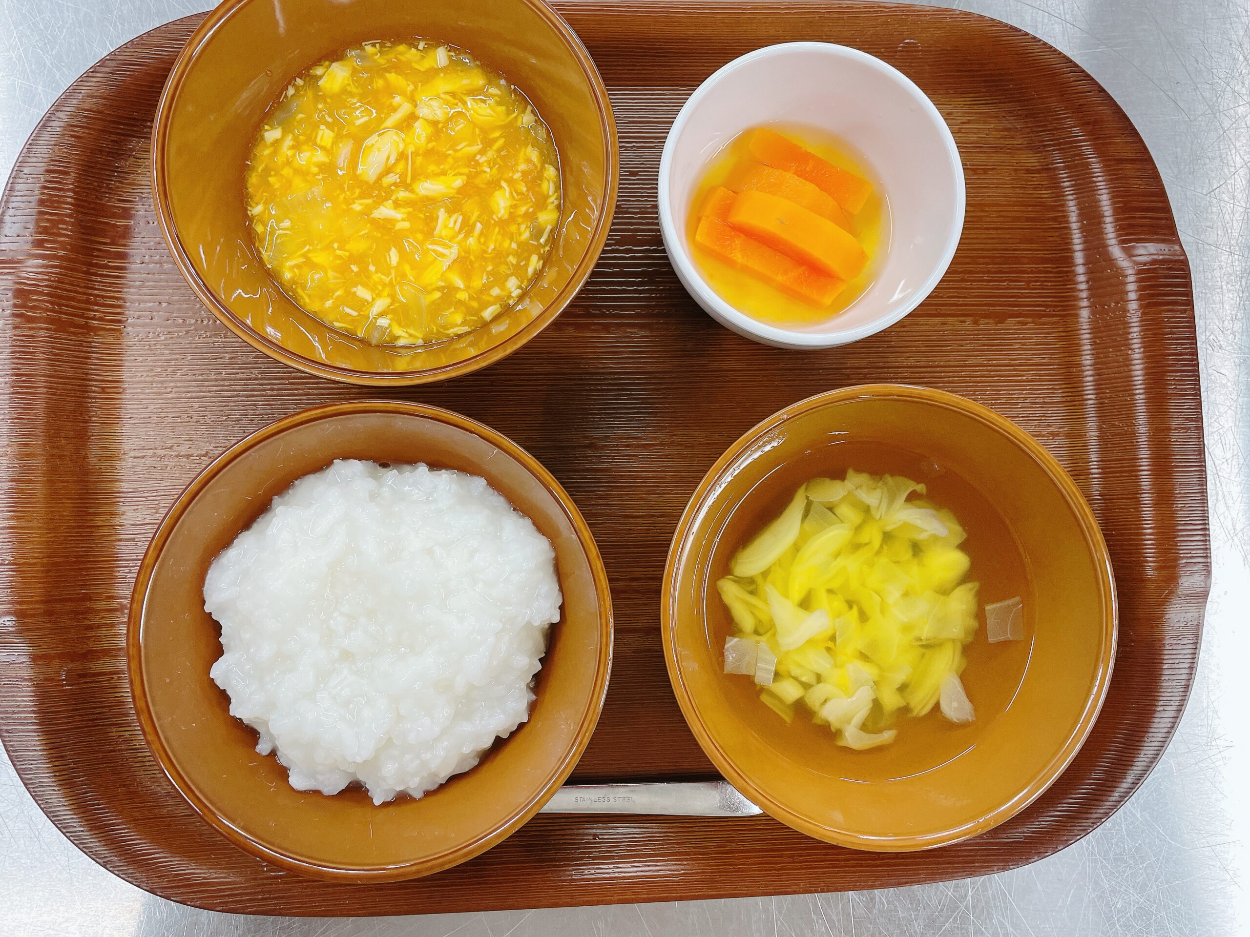 にんじん、しめじ、キャベツをコンソメスープで煮込み、ほんのり塩味を効かせたやさしい温かいスープです。具材が小さめで、スプーンを上手に使う練習にもなります。