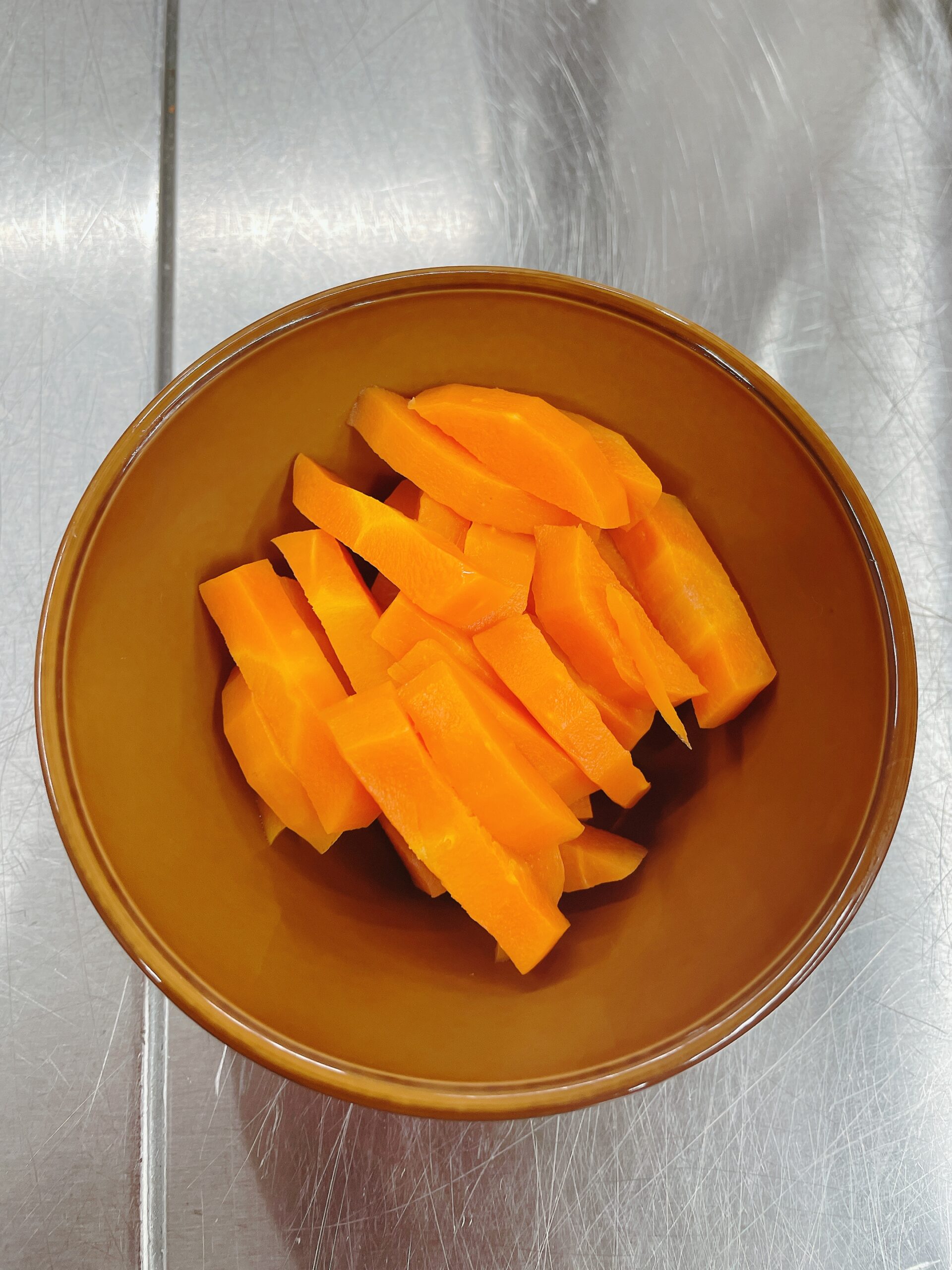 切り身のかれいは生姜の効いた特製タレにじっくり漬け込み、弱火でふっくらと煮つけました。生姜のさわやかな風味が魚の生臭さを抑え、優しい甘辛い味付けはまさに大人も納得の仕上がり。子どもたちは「お魚ふわふわ!」と笑顔でほおばり、ご飯との相性を楽しんでいました。