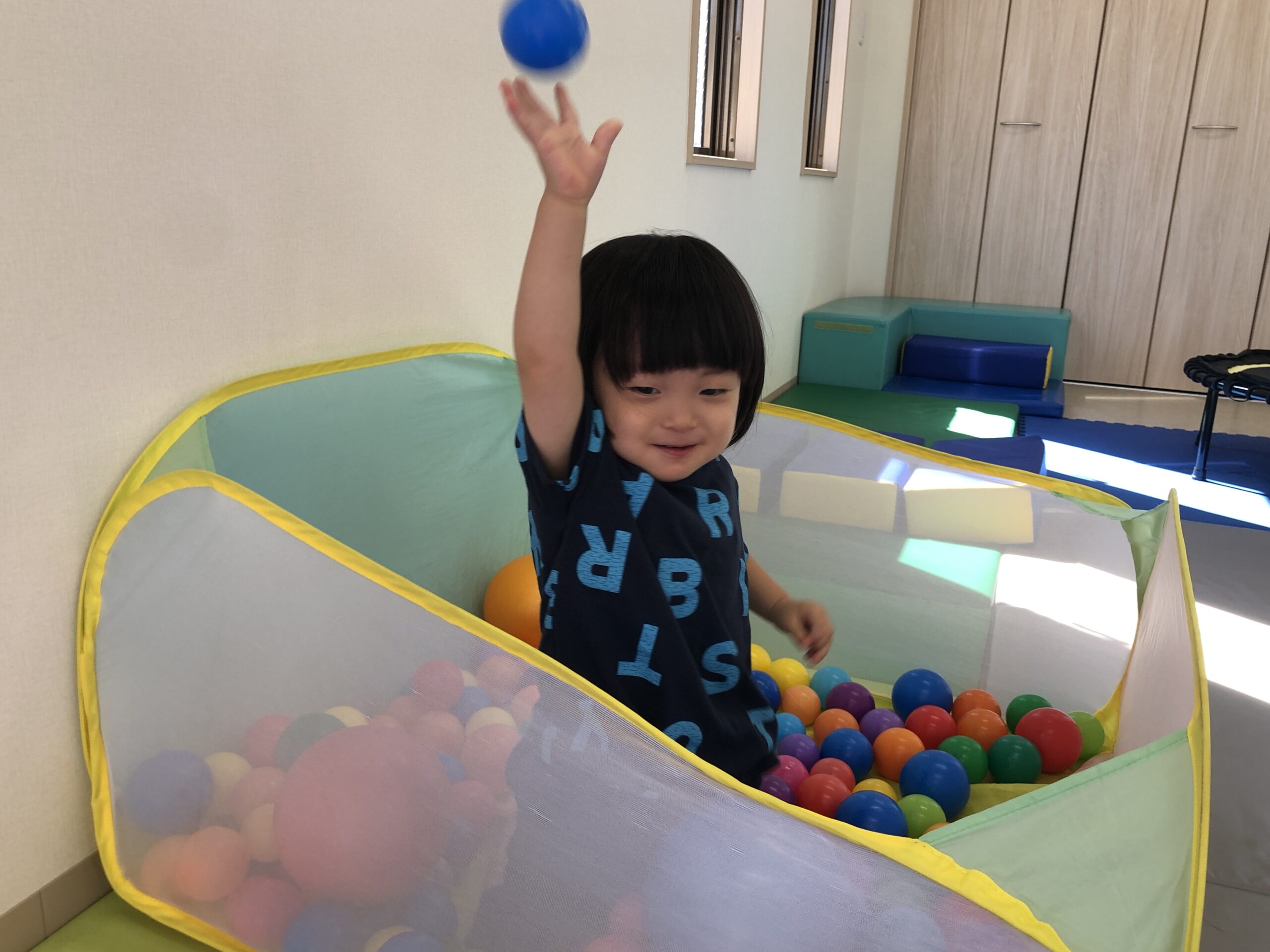 そのあとは、トランポリンやボールプールでも体をたくさん動かして遊びました。ボールを手に持って「せんせい、どうぞ!」と差し出してくれる姿も微笑ましかったです。
