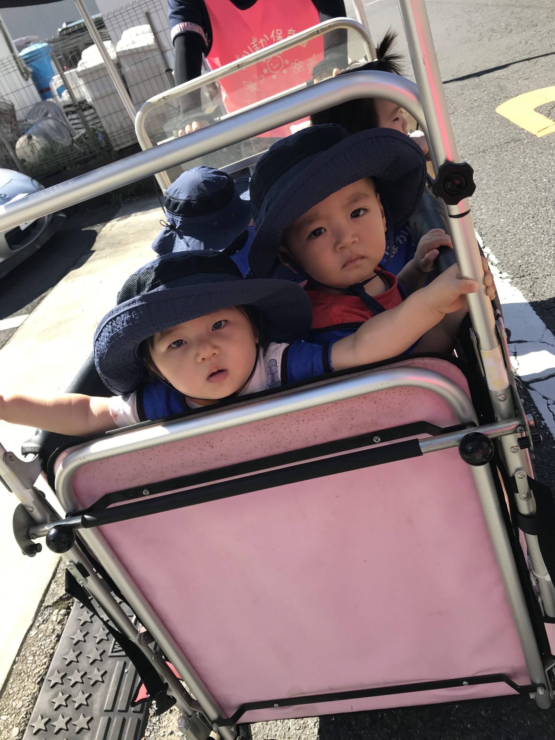 一方、0歳児の青空組さんは、公園にお散歩に行ってきましたよ。お散歩バギーに乗って秋の自然にたくさん触れました。公園に生えていた猫じゃらしを見つけると、保育士が「ふわふわだね〜」と声をかけ、それを真似してそっと触れる姿がありました。また、つかまり立ちや歩く練習をする子のそばで、「〇〇ちゃん、上手だね〜」「あんよトントンしてみようか」とやさしくサポート。365日保育だからこそ、ゆったりとした時間の中で、子どもの発達をしっかり支えることができます。