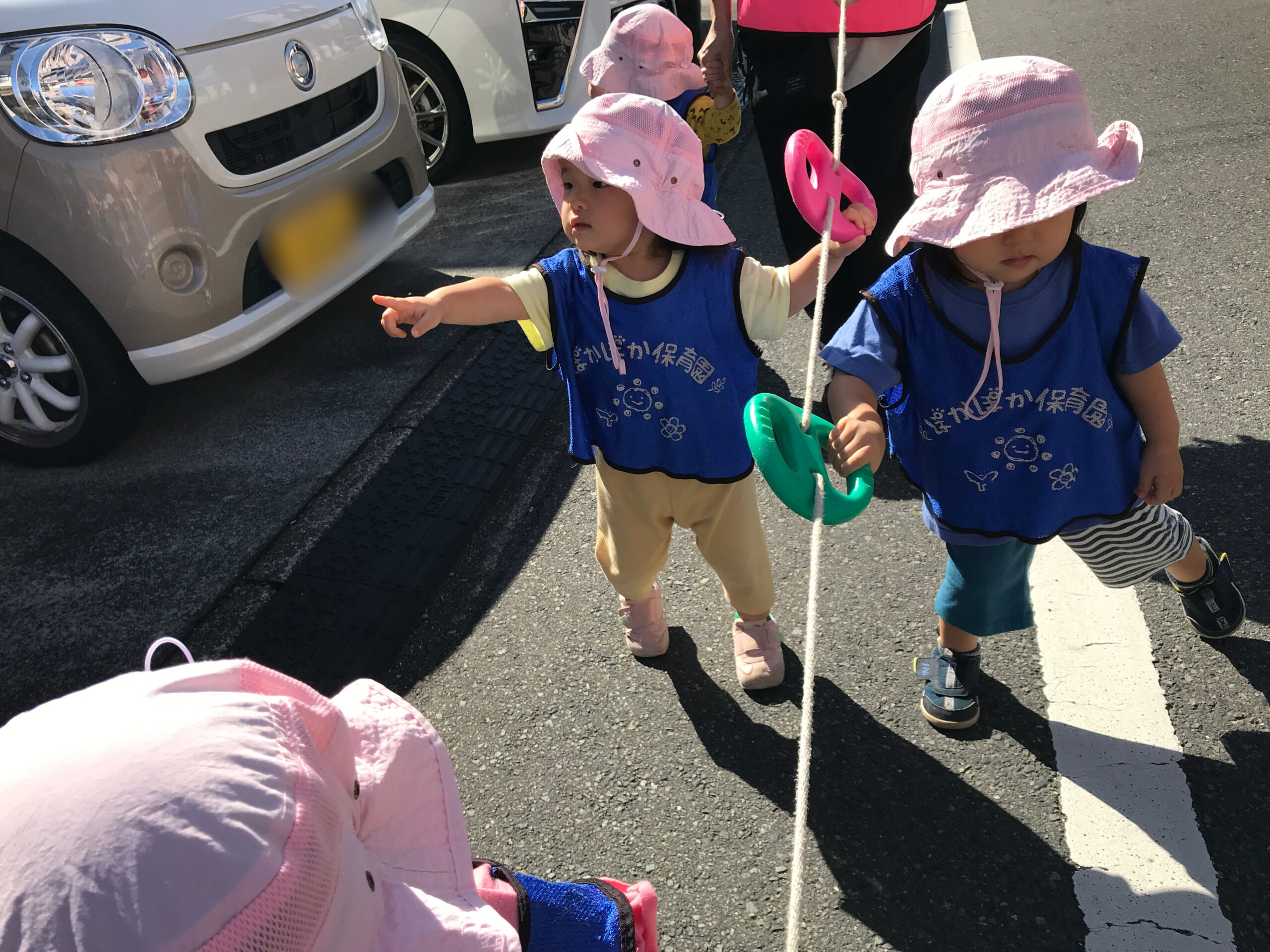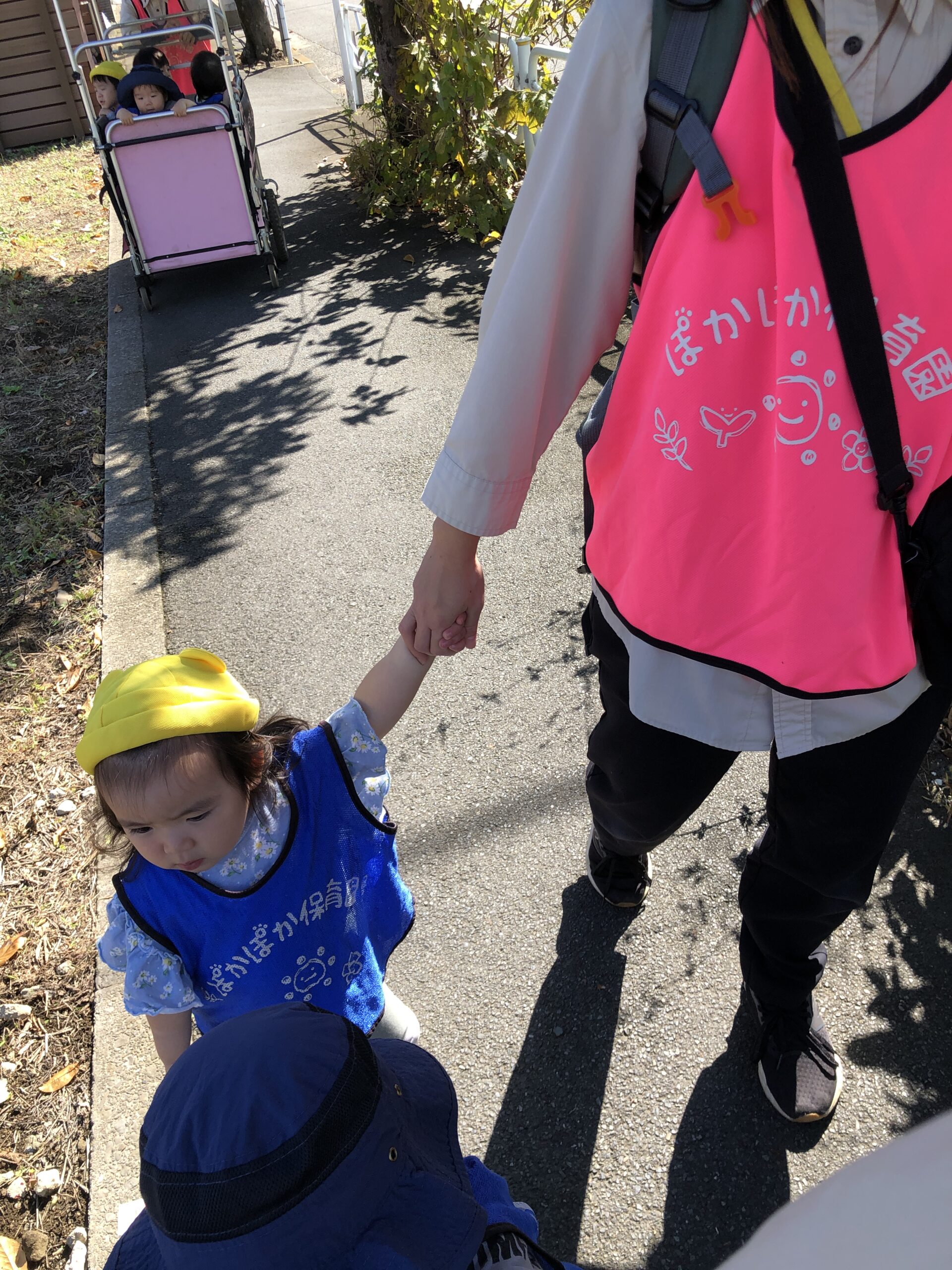 0歳児の子は歩ける子は先生と手をつないで、ちょこんと並んで歩く姿がとても可愛らしく、