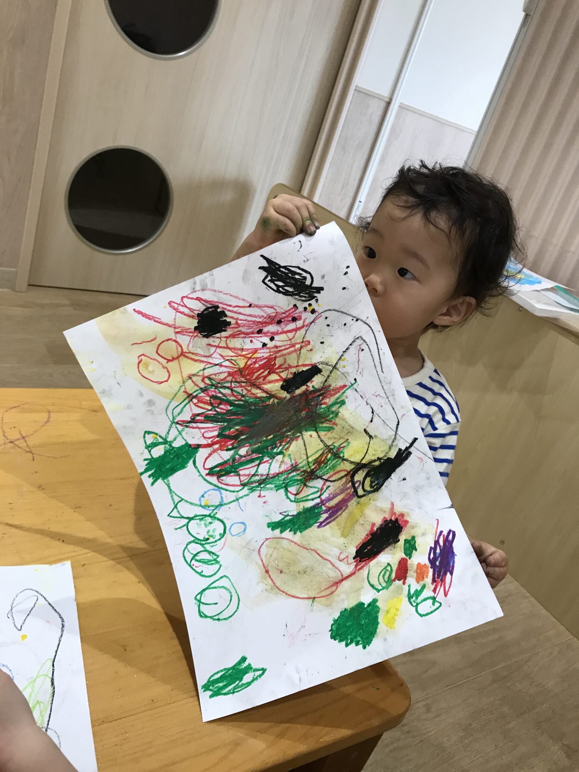 絵の具をぬりぬり、重ねぬりを楽しみながら、最後まで集中して取り組む姿が印象的でした。