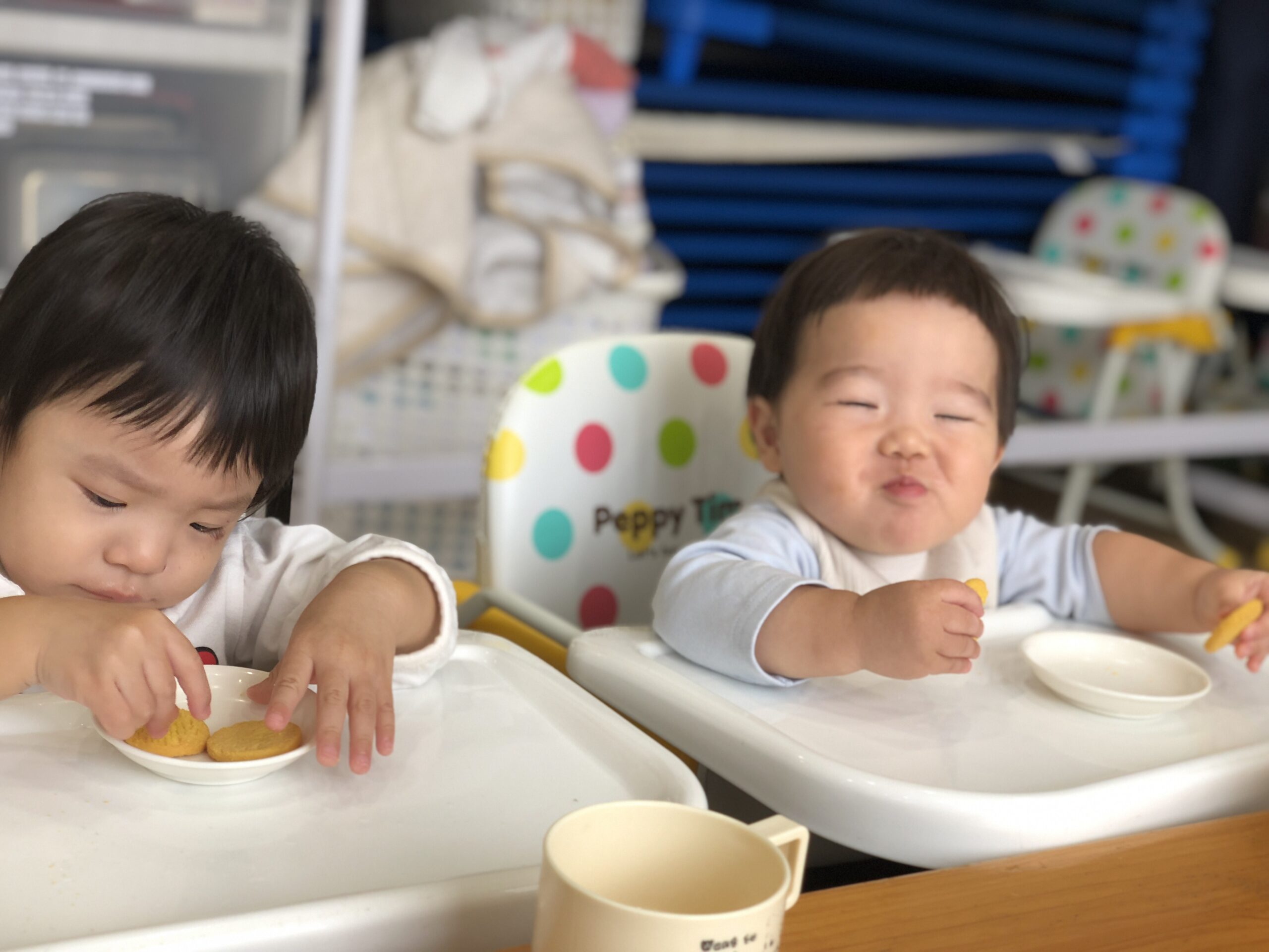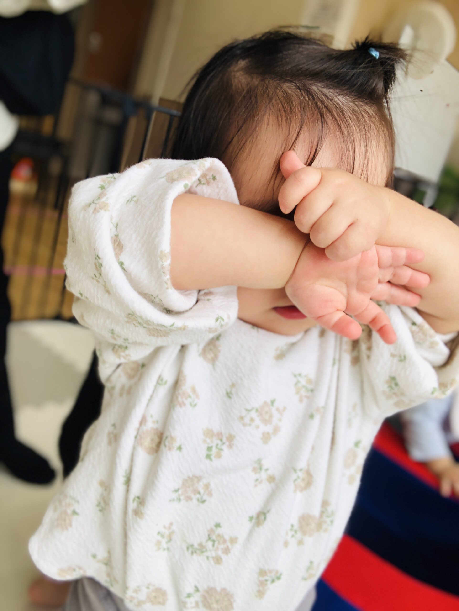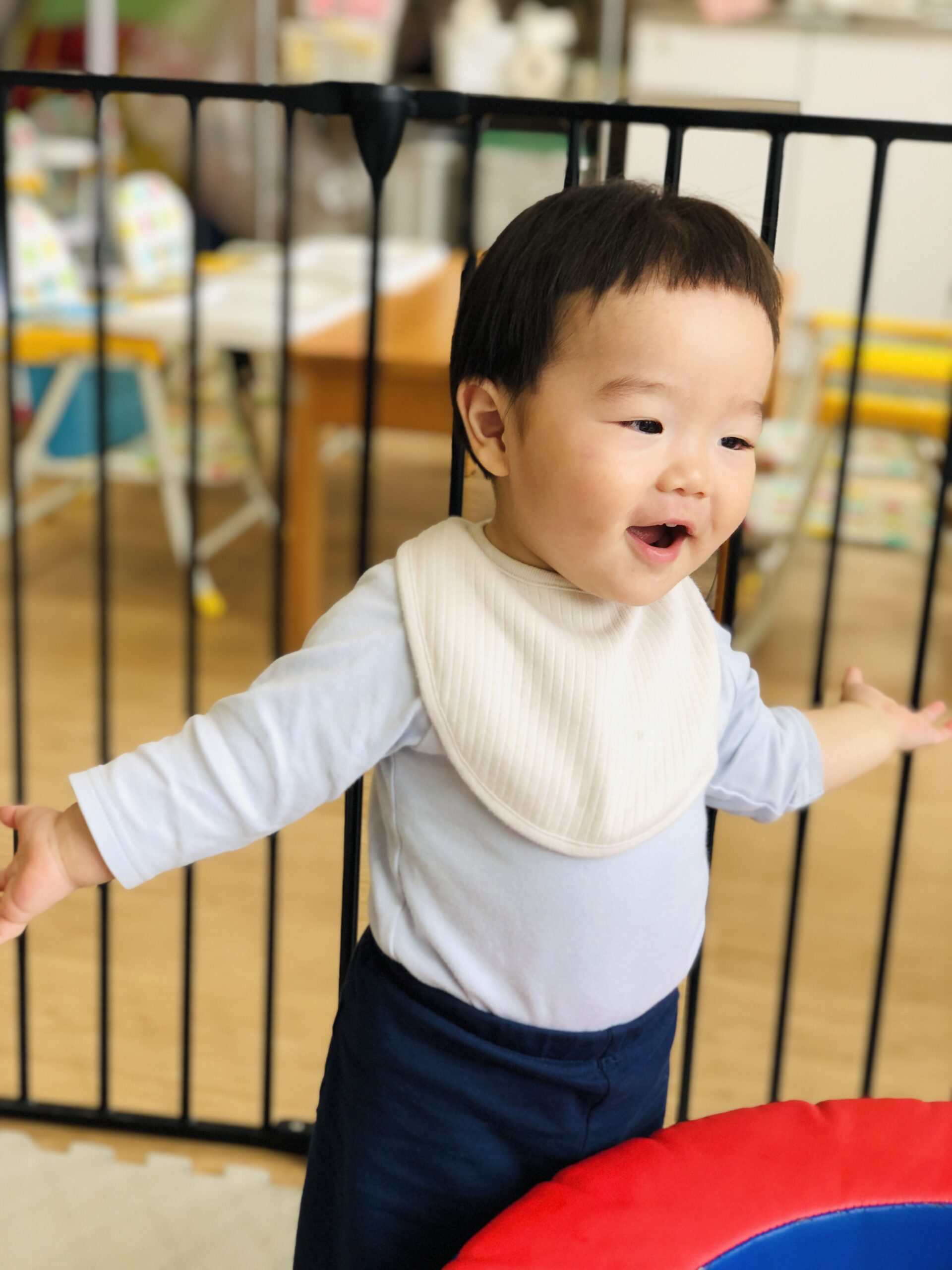 手で顔を隠して「ばあっ!」と笑い合う姿がとってもかわいらしく、先生も「ばあっ!」と一緒に顔を出すと、子どもたちの笑い声が保育室いっぱいに広がっていました。
