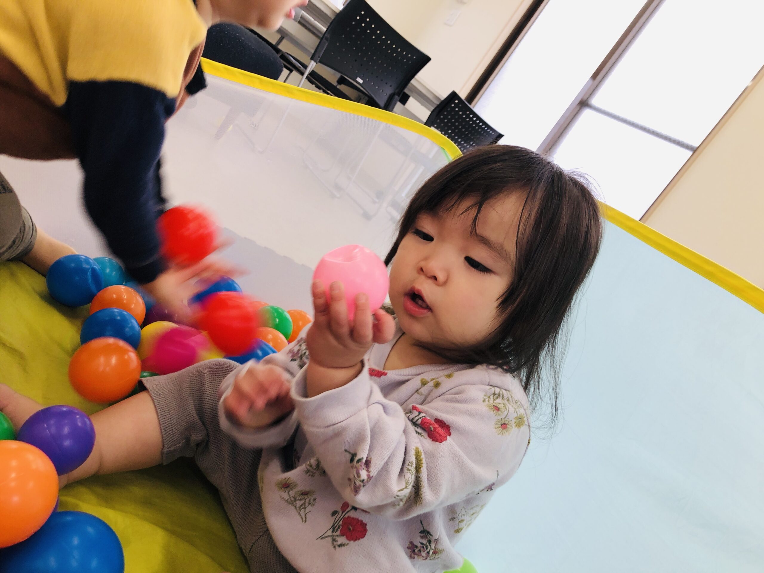 0歳児さんは小さなボールをコロコロ転がして「どうぞ」と渡したりと、優しいやりとりがたくさん見られました。