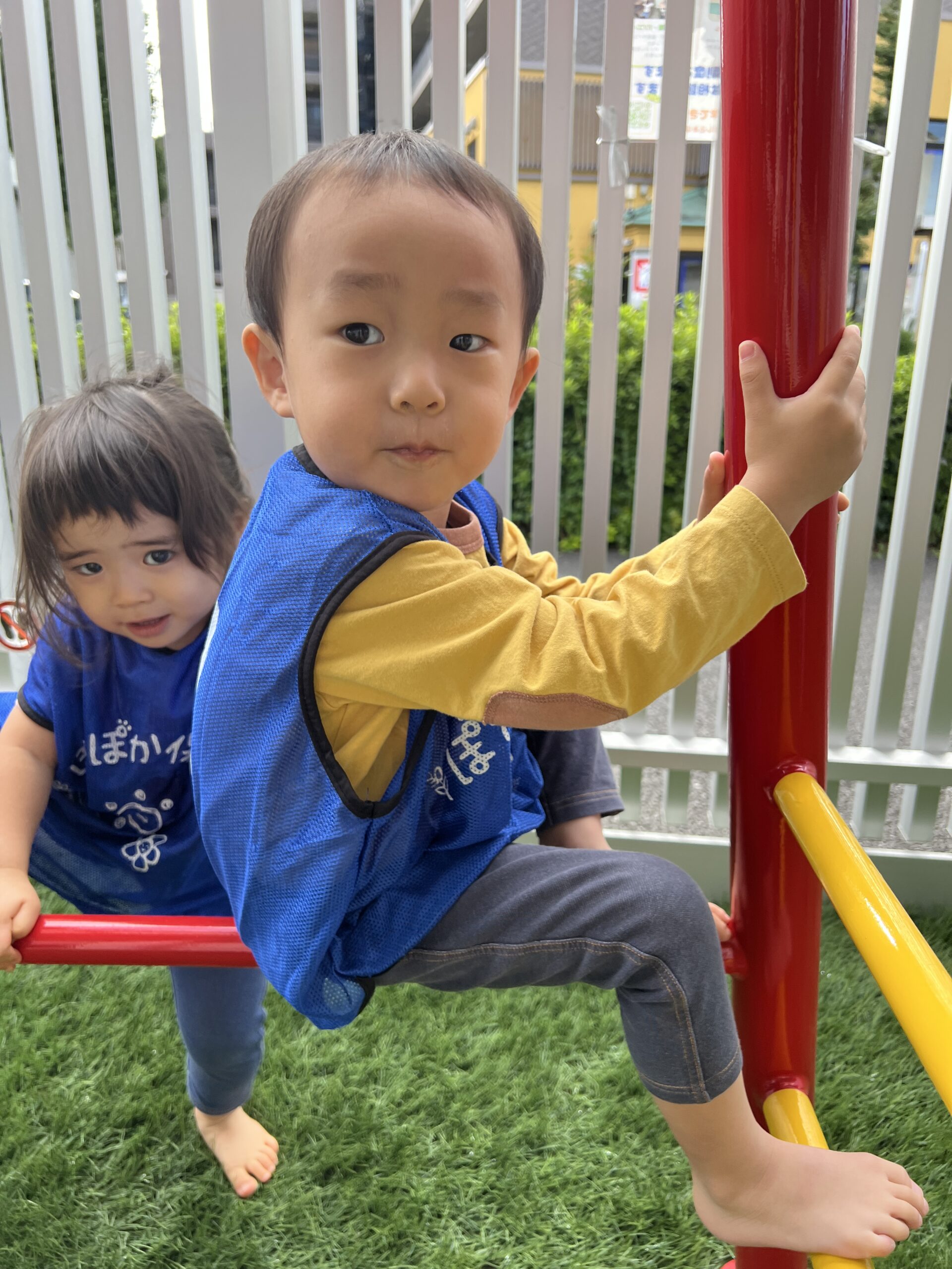 あれれ?ポールにしがみついている、おさるさんを発見♡(笑)