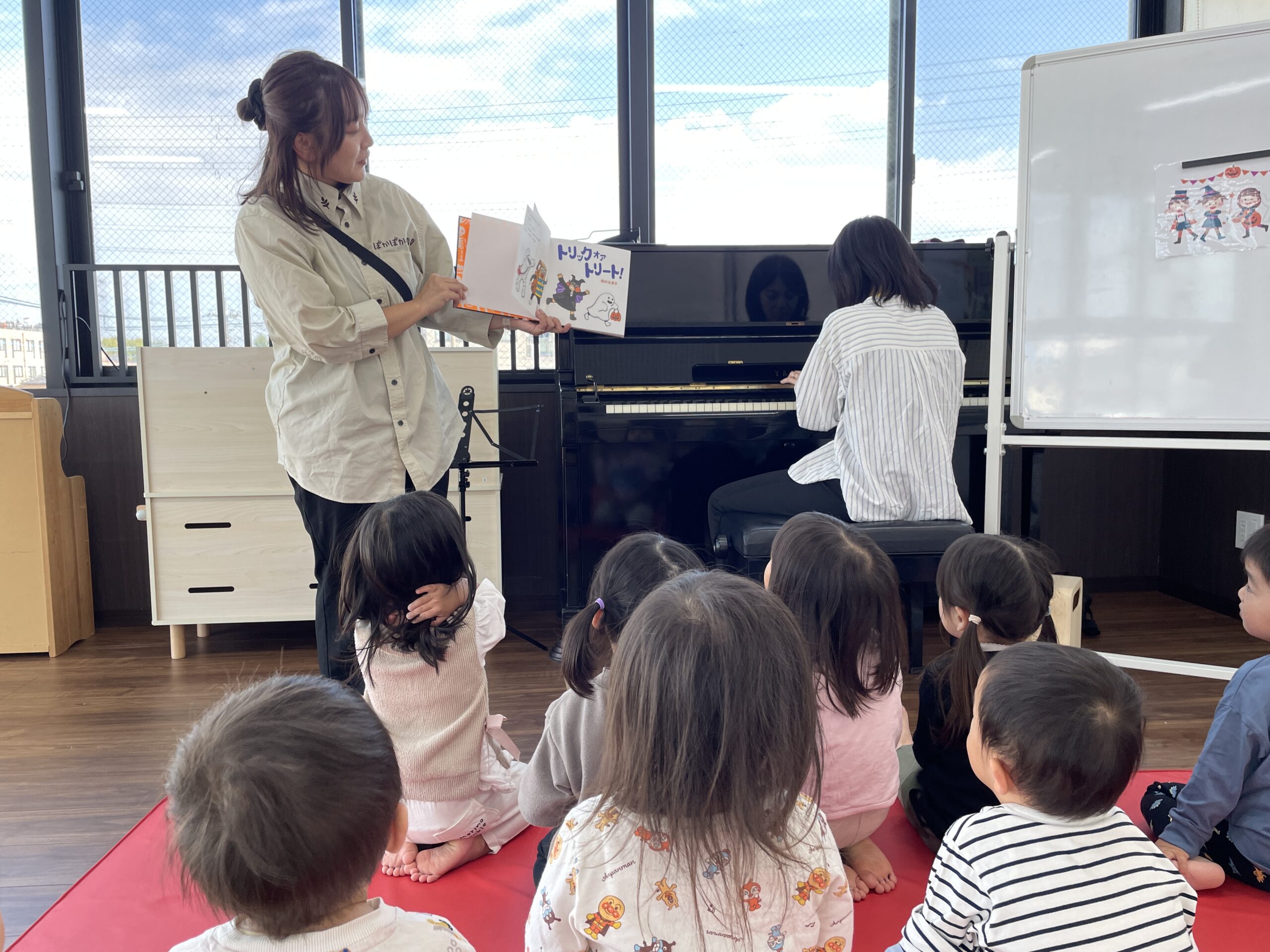 音楽に合わせてハロウィンの絵本の読み聞かせを行いました♬