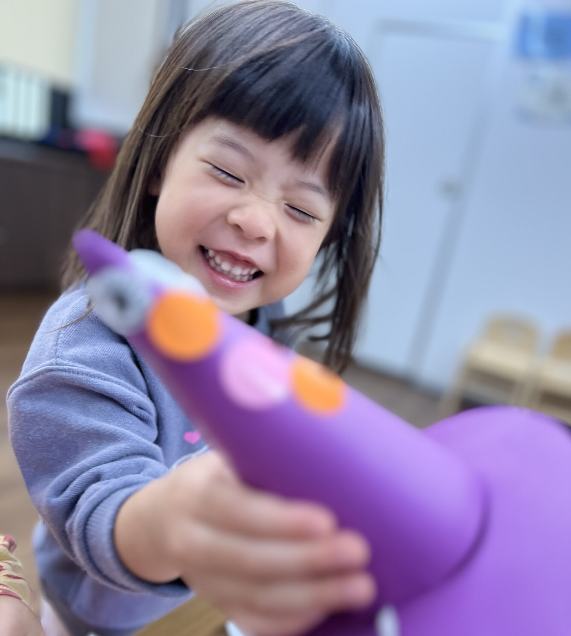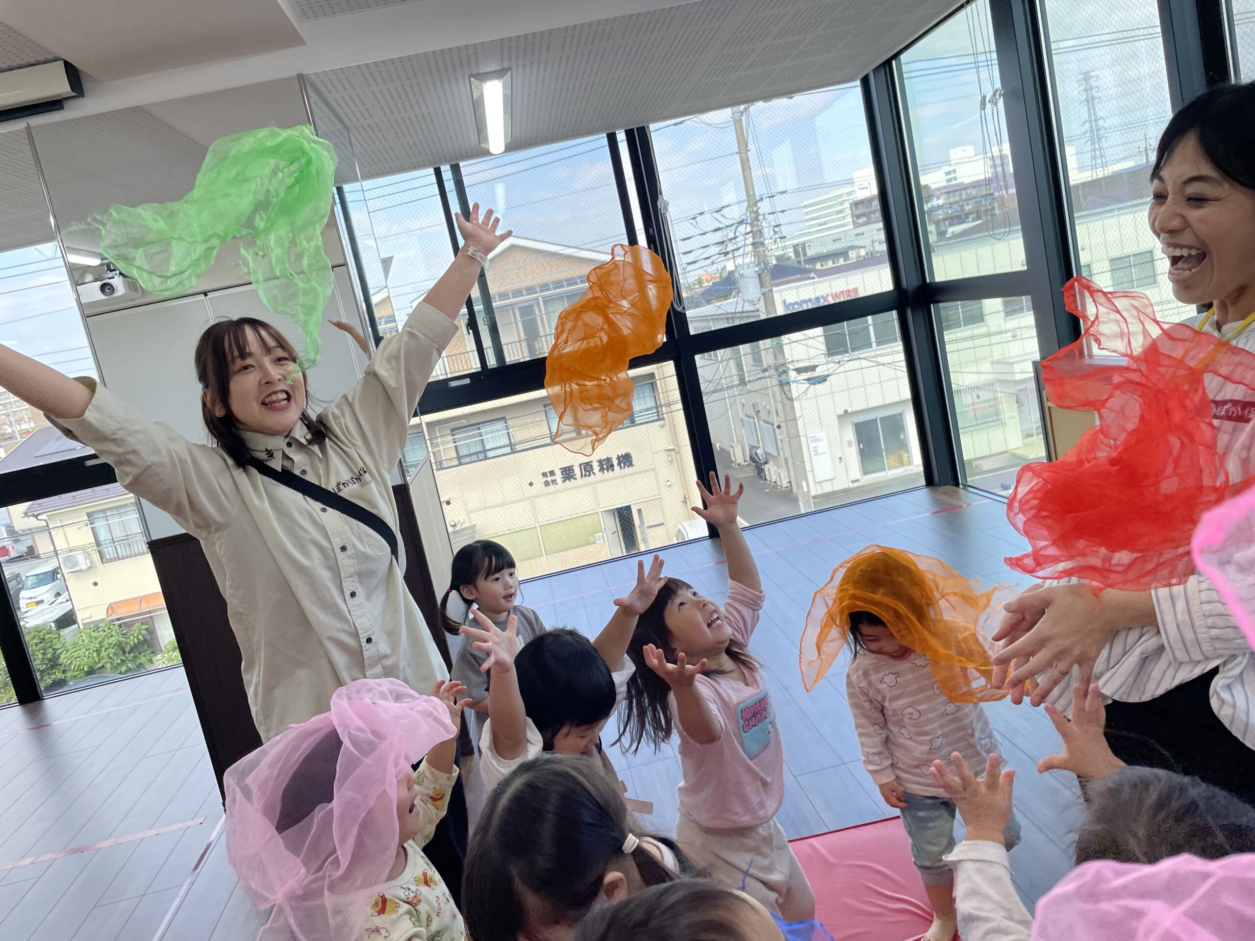 笑顔で遊ぶ先生の姿を見て、子どもたちは「先生も楽しそう!」と嬉しそう。