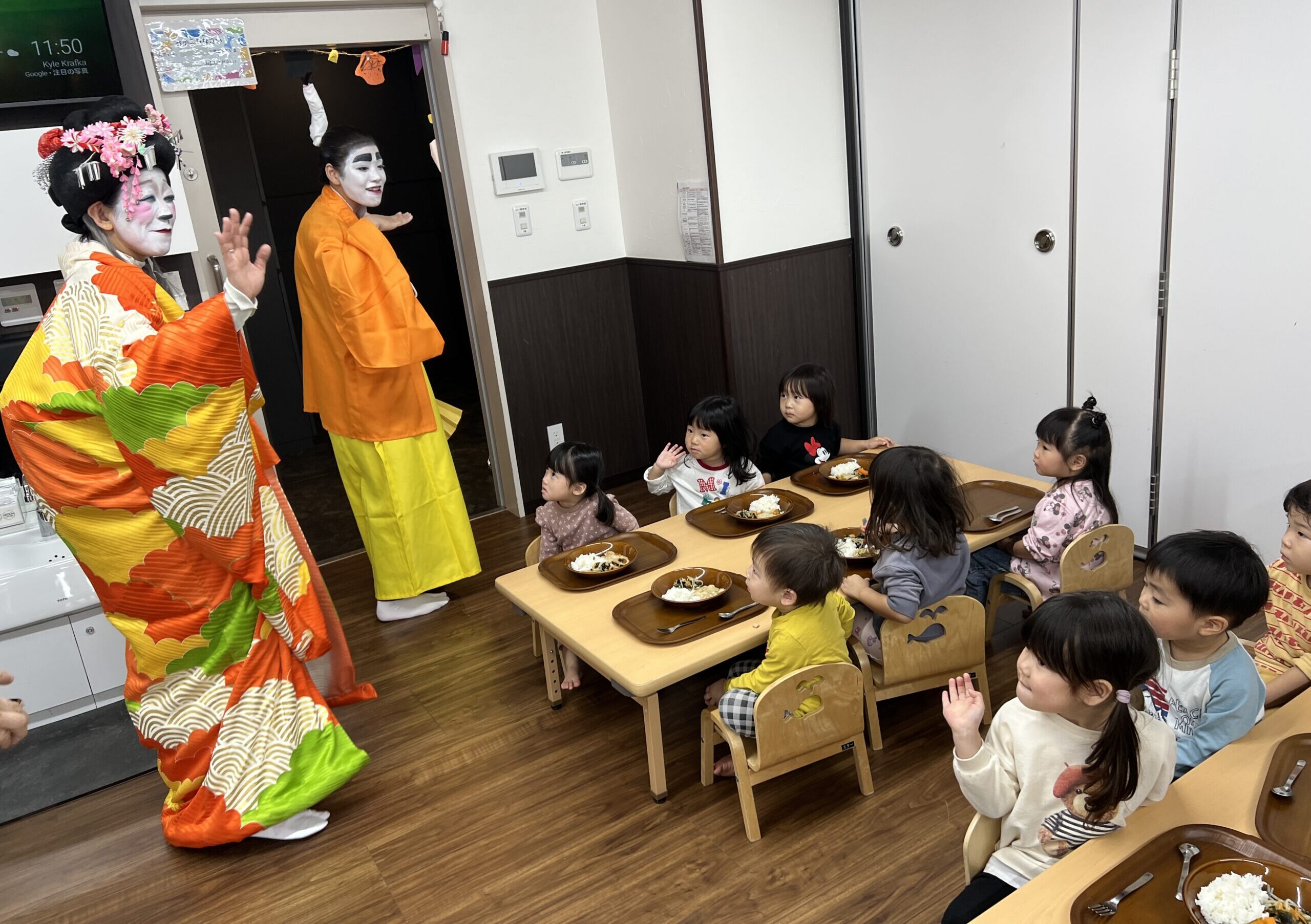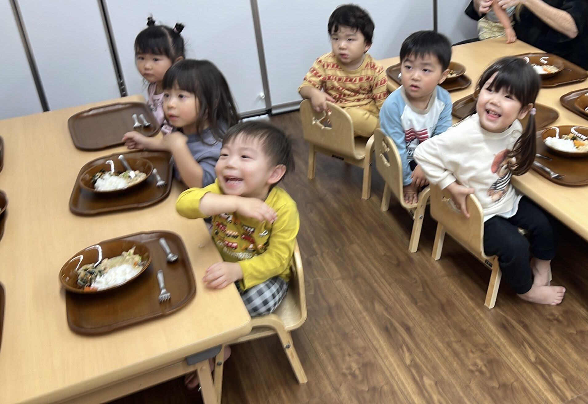 「ハロウィン楽しかったね~♪」と言いながらお給食を食べようとしていると、今度は殿と姫がお部屋に遊びに来てくれました♡♡