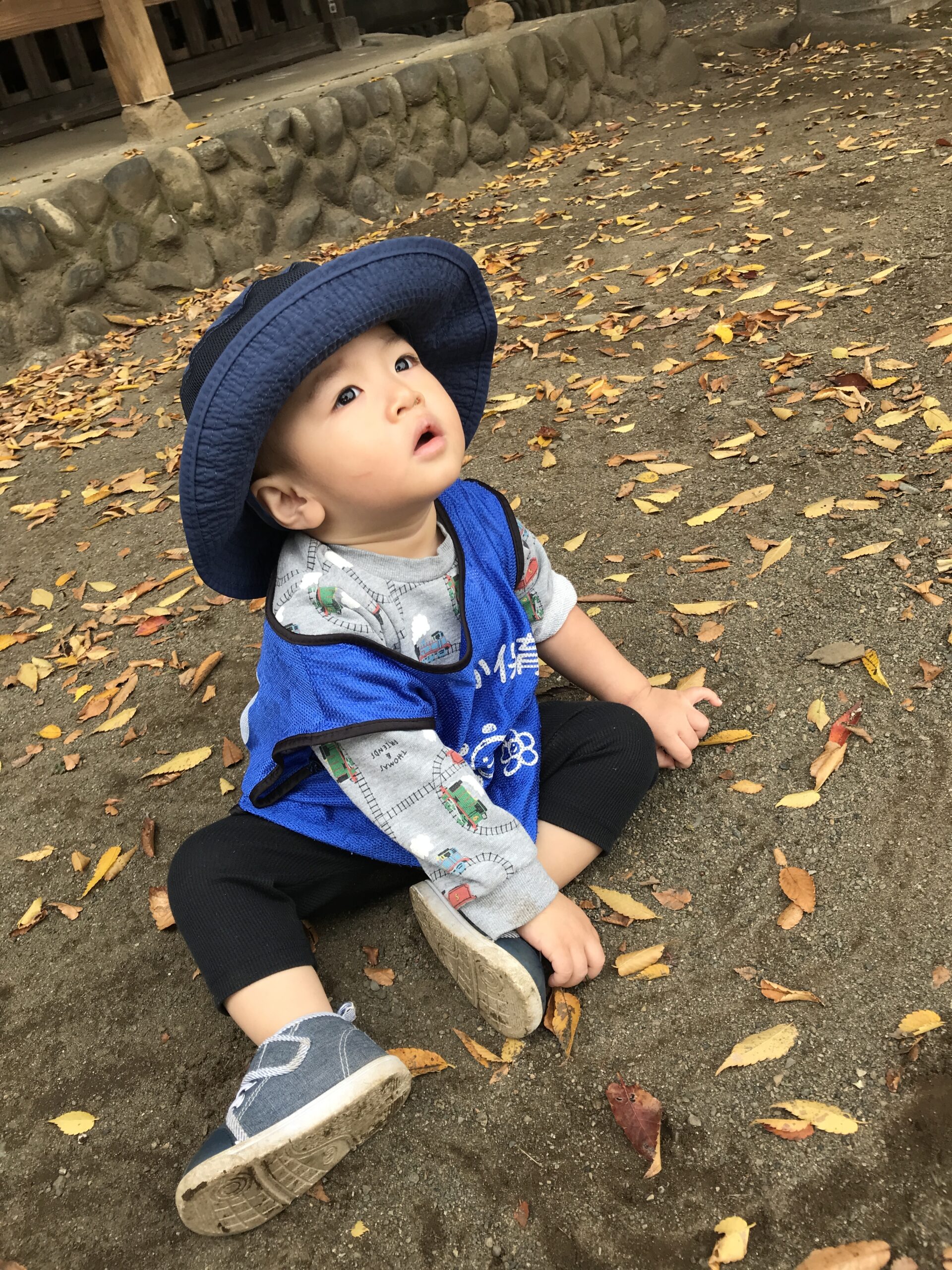 拾った黄色い葉っぱを見せながら「みて〜、葉っぱ」と笑顔で見せてくれました。