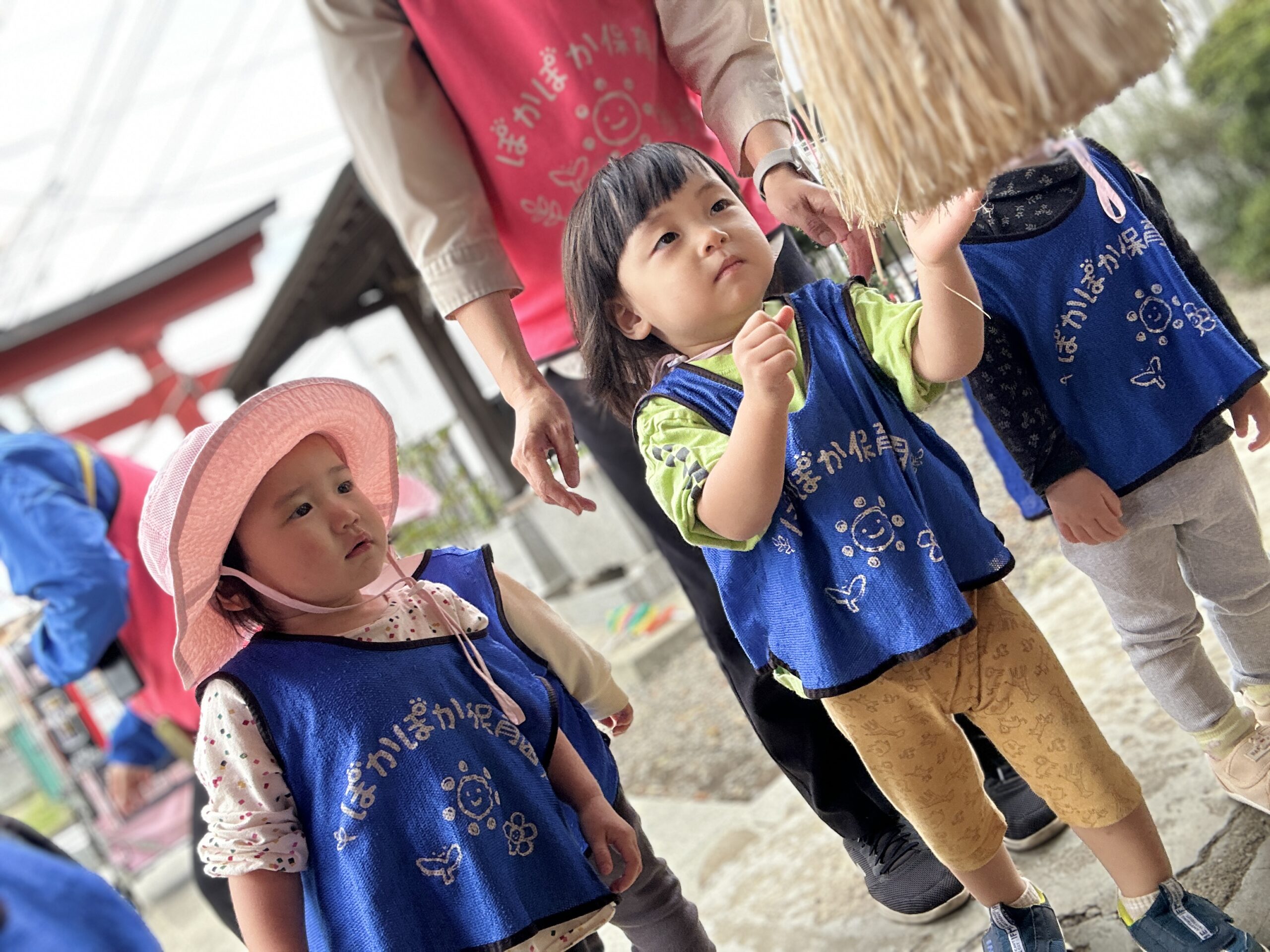 今日は虹組と青空組の子どもたちで、近くの神社へお散歩に行きました。