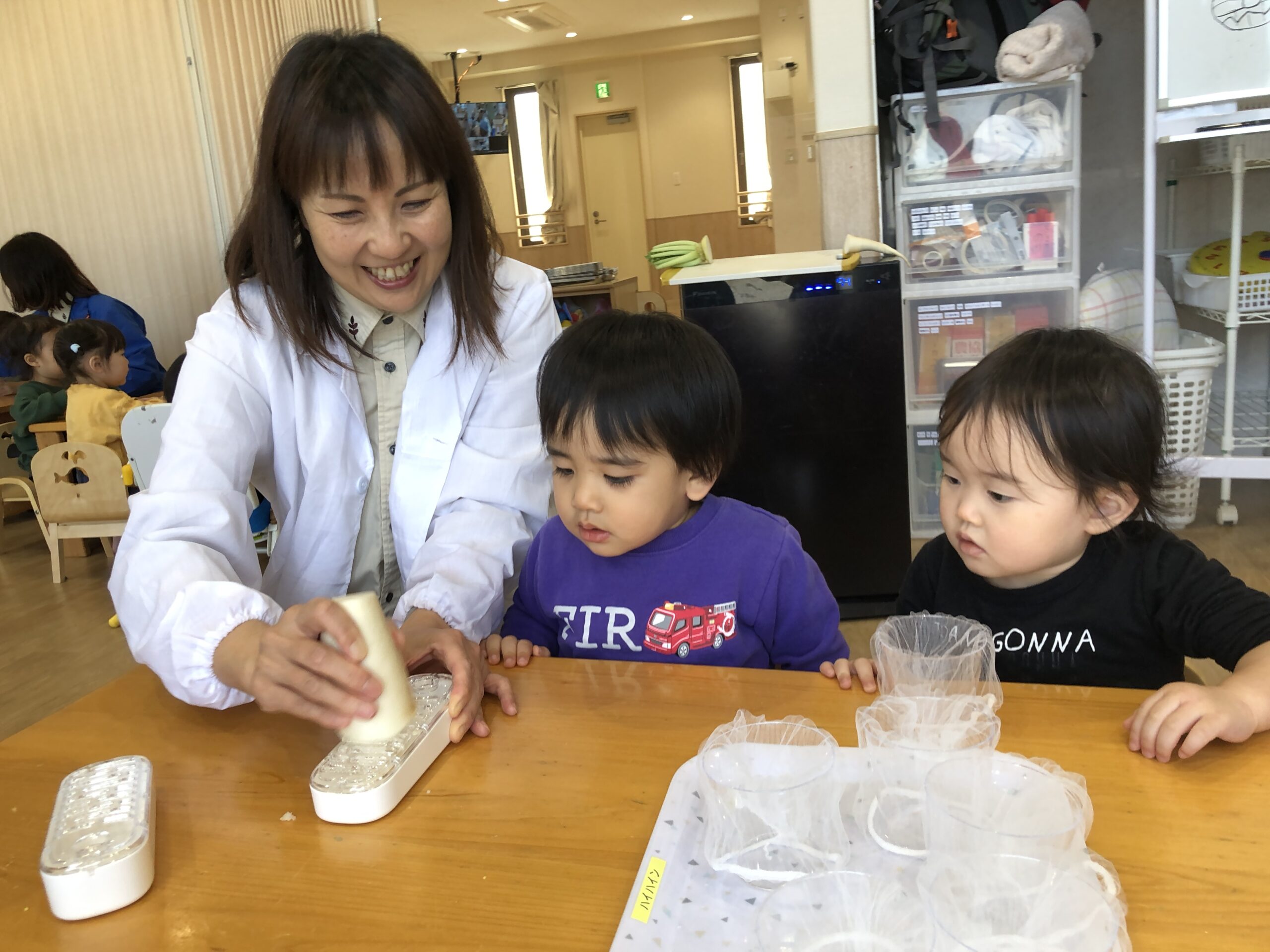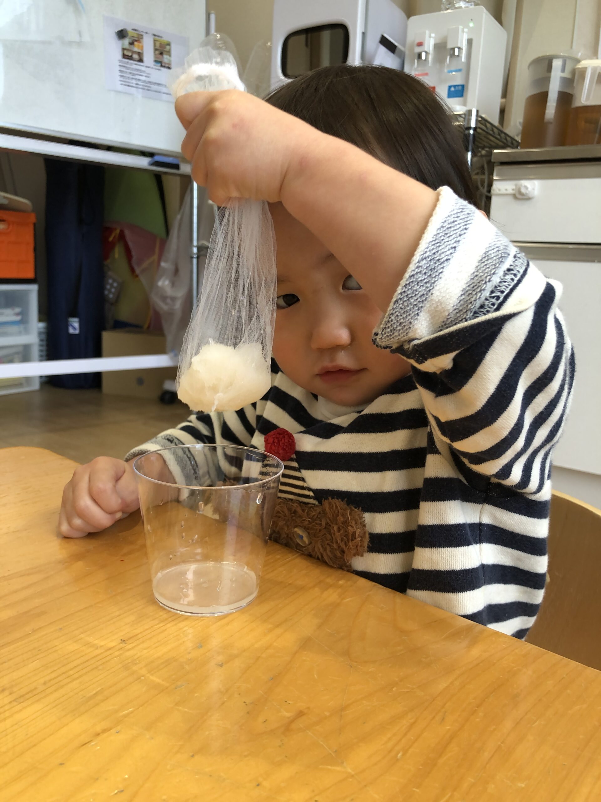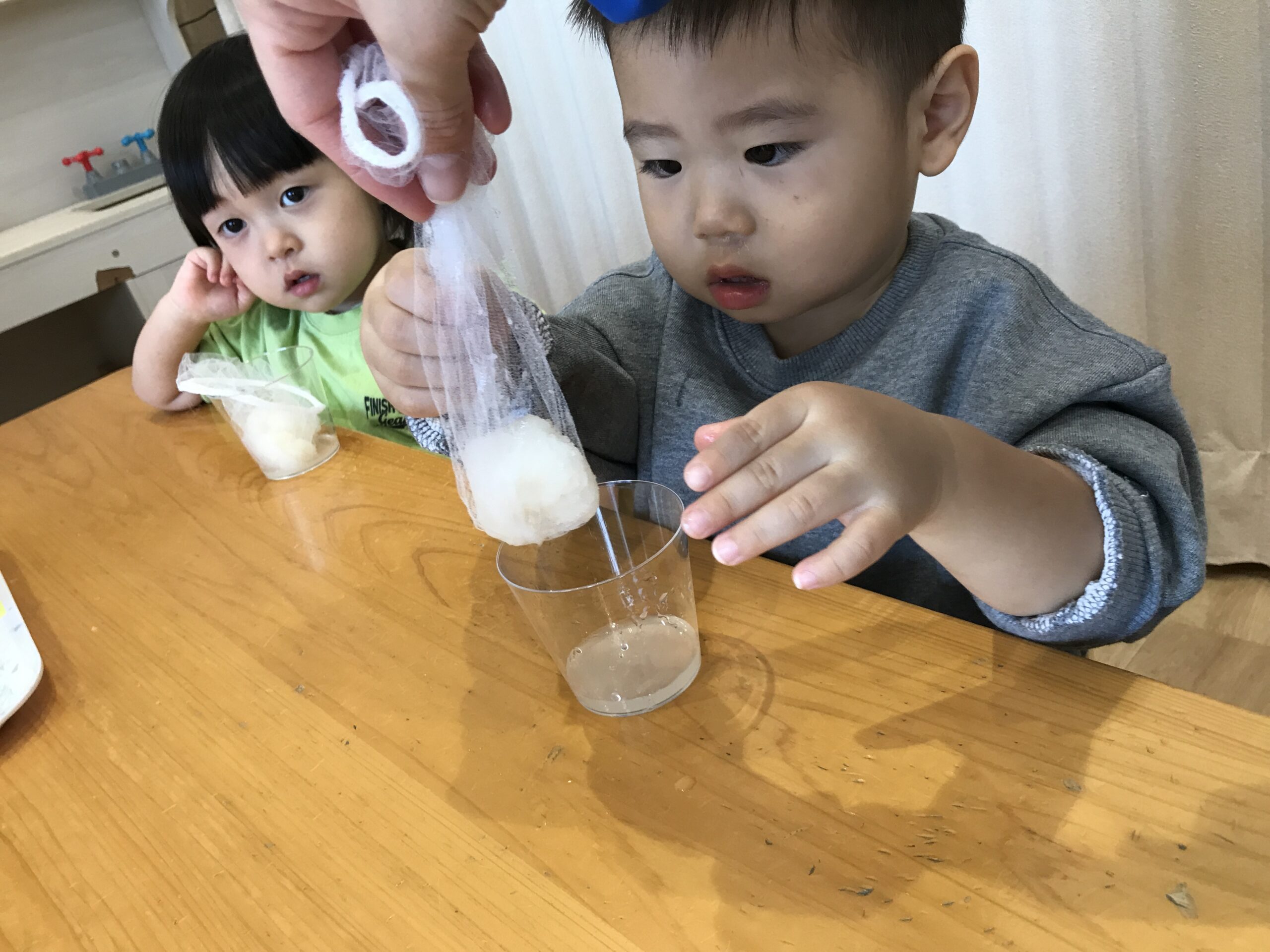乳児さんでも安全に楽しめる、手厚保育ならではのサイエンス体験です。