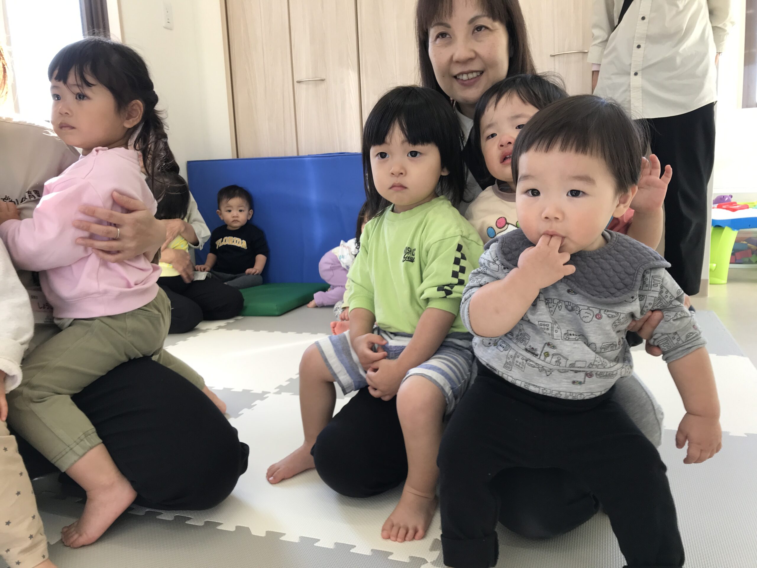 0歳児の子どもたちも保育者の腕の中で、小さな口をちょこんと開けていて、乳児保育ならではの安心した雰囲気が広がっていました。