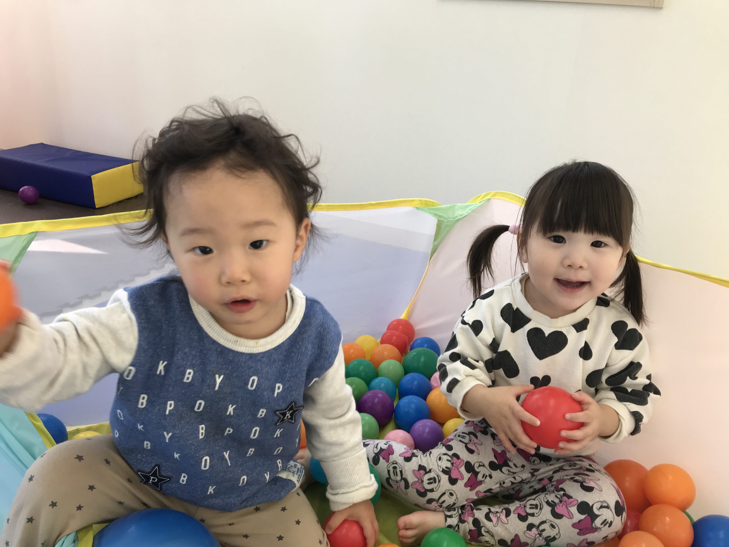 ボールを投げたり、「おにぎりみたいだね」と楽しい時間を過ごしました。
