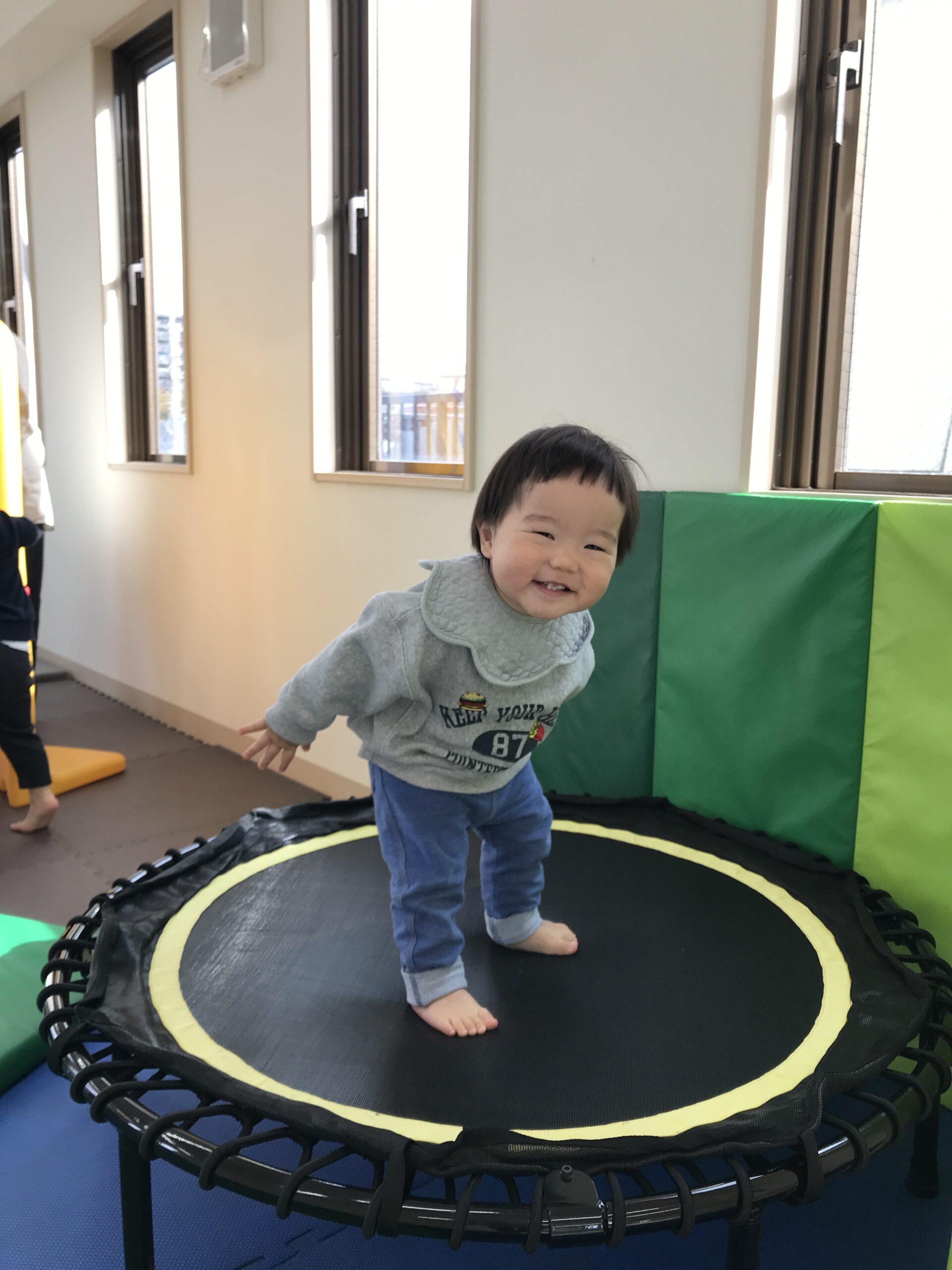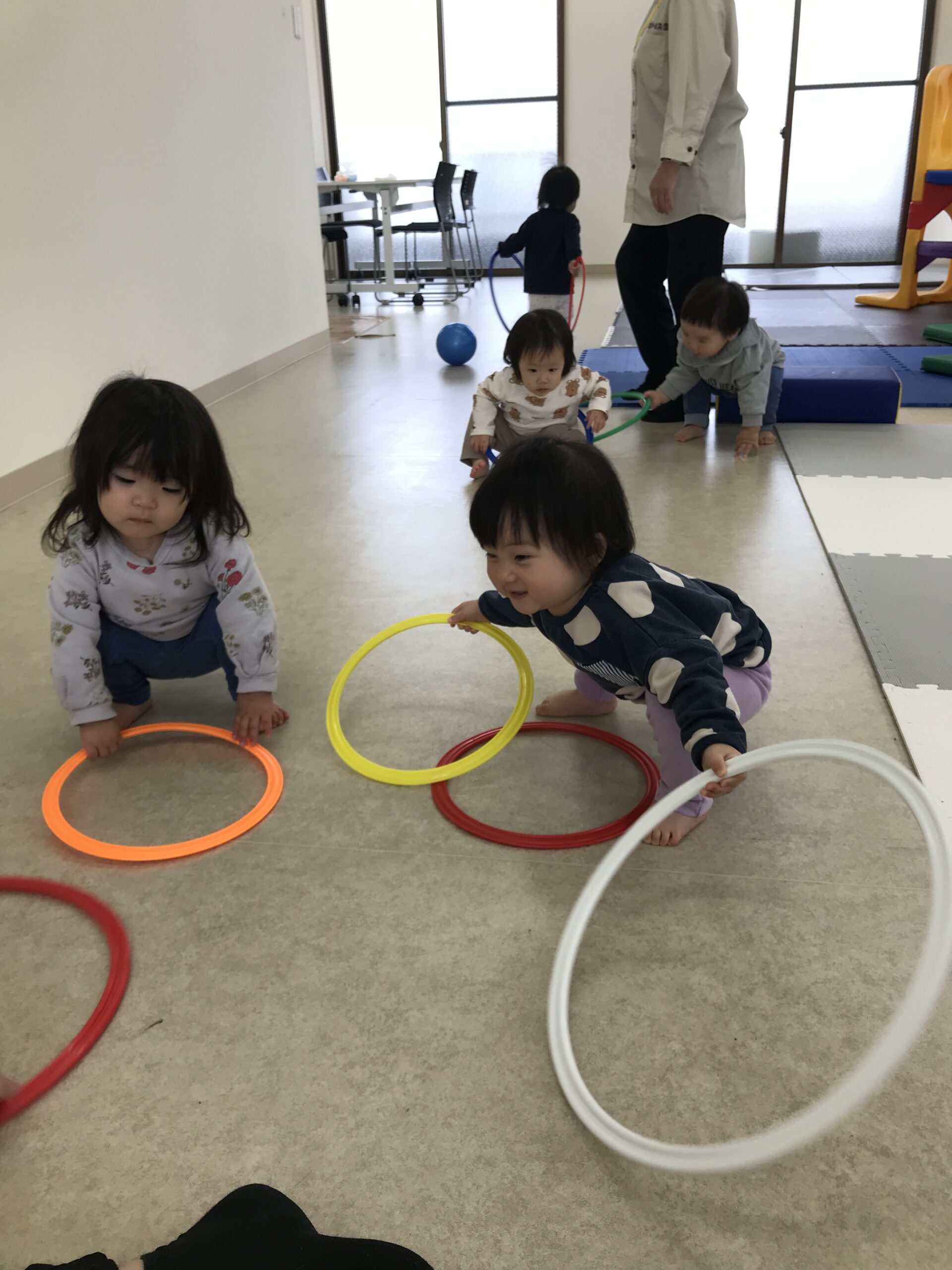 滑り台を何度も滑ったり、フラフープやトランポリンに挑戦する子も。
