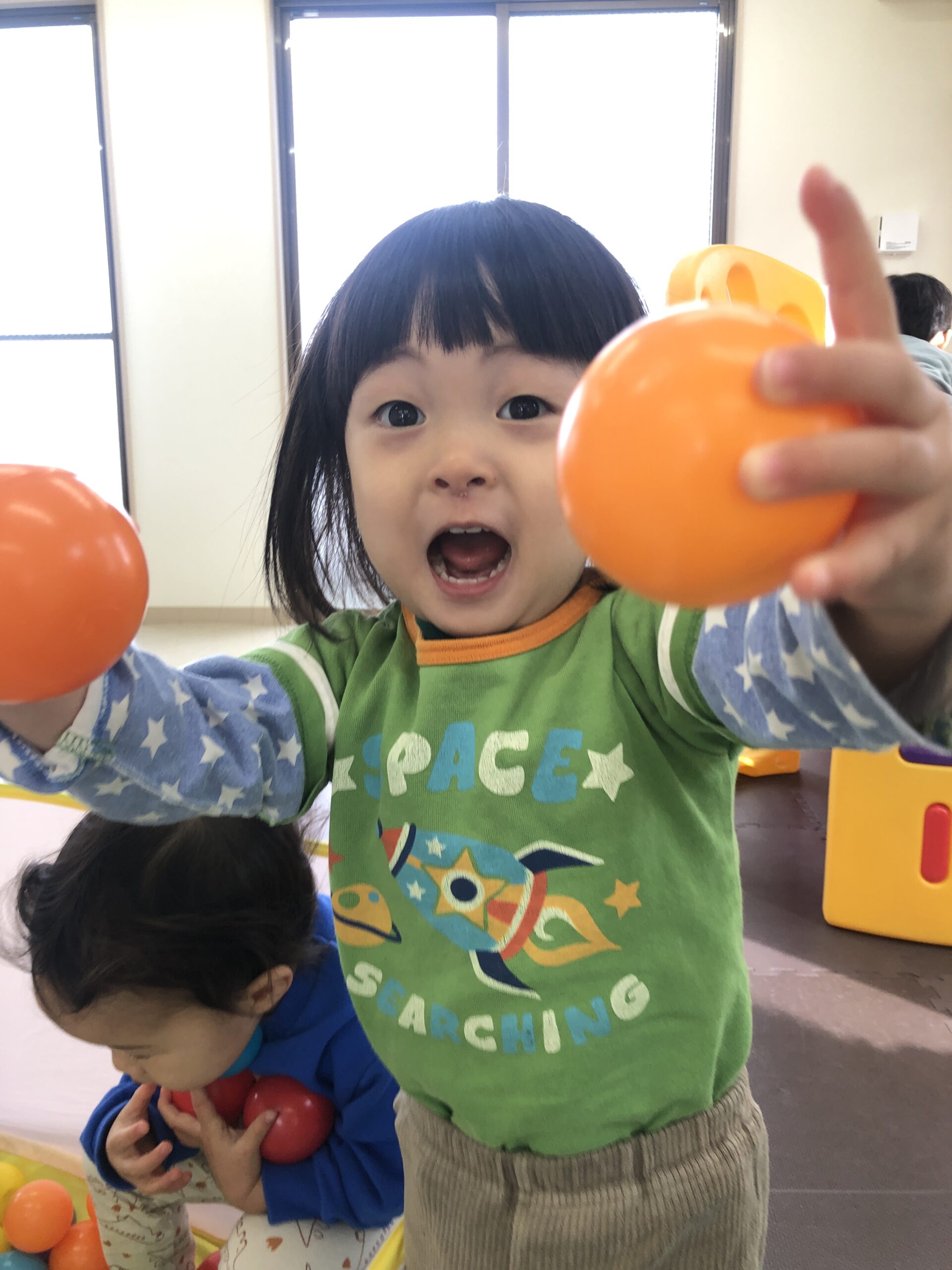今日も元気に遊び、笑顔いっぱいの0・1歳児たち。
