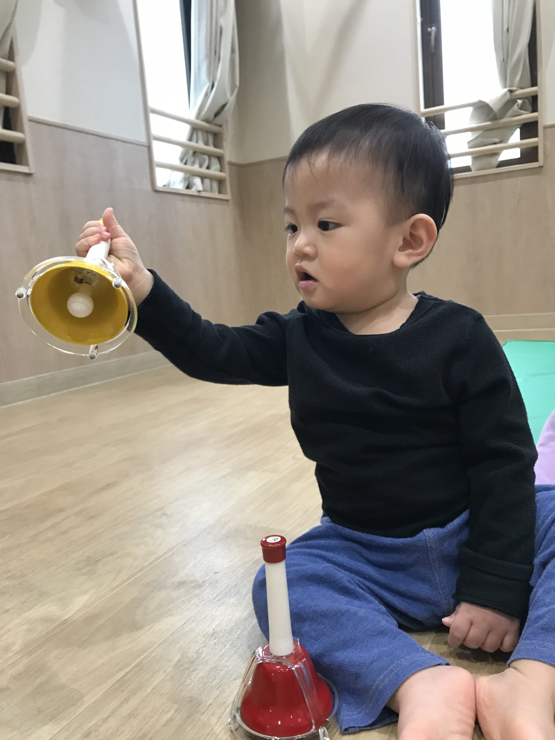 ハンドベルを鳴らすと「りんりん」と優しい音。