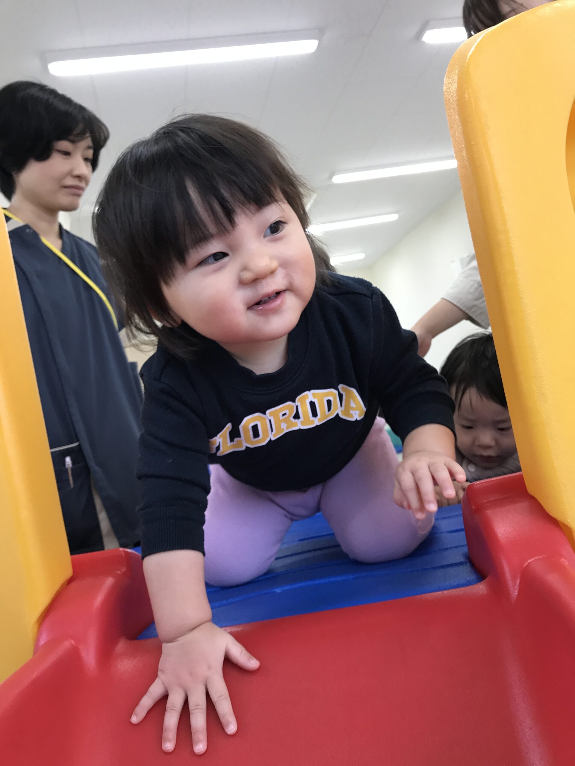 滑り台が大人気で、順番を待ちながら何度も挑戦。