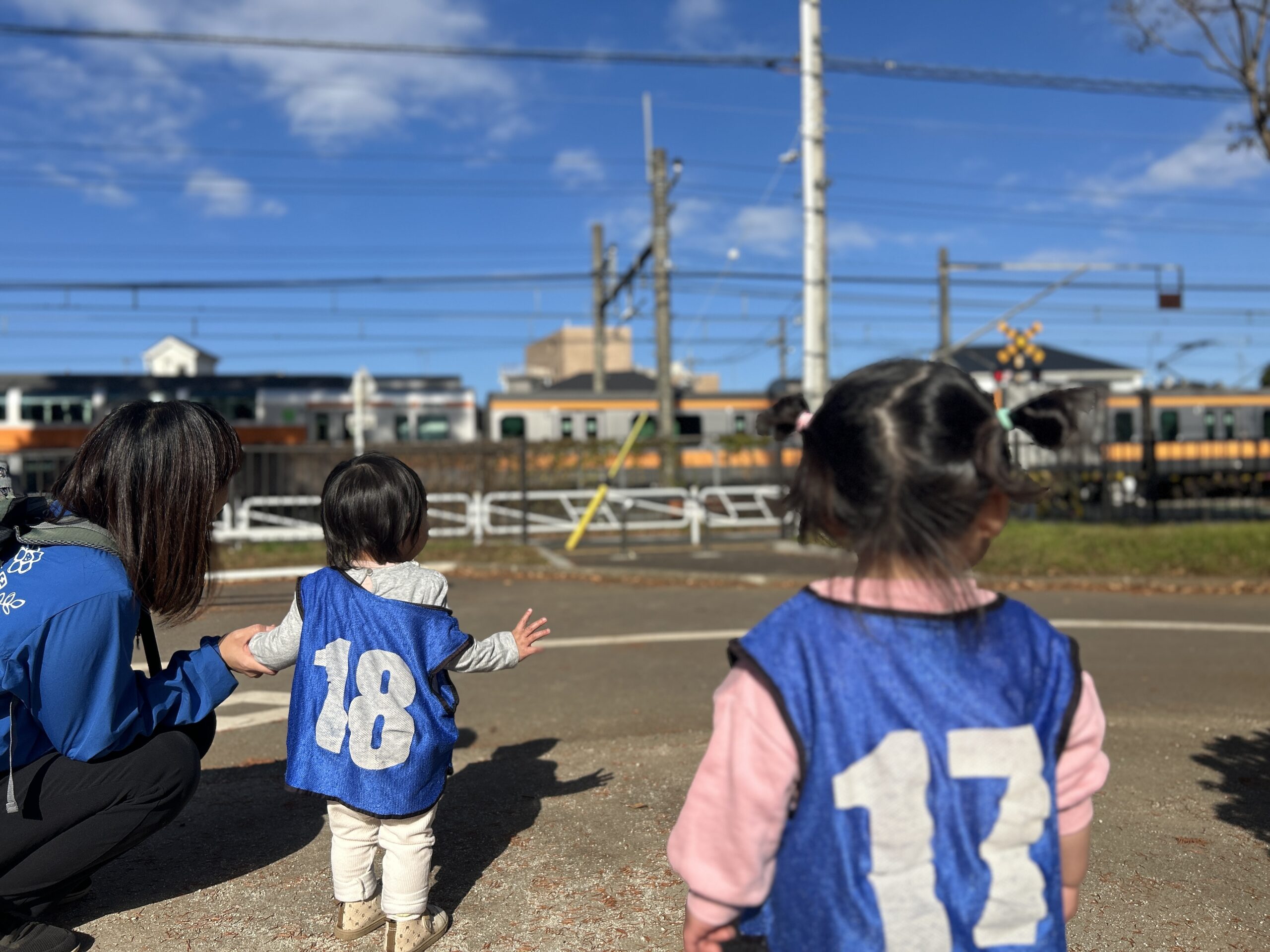 公園の横は踏切が!電車も良く通るので大興奮でした✨
