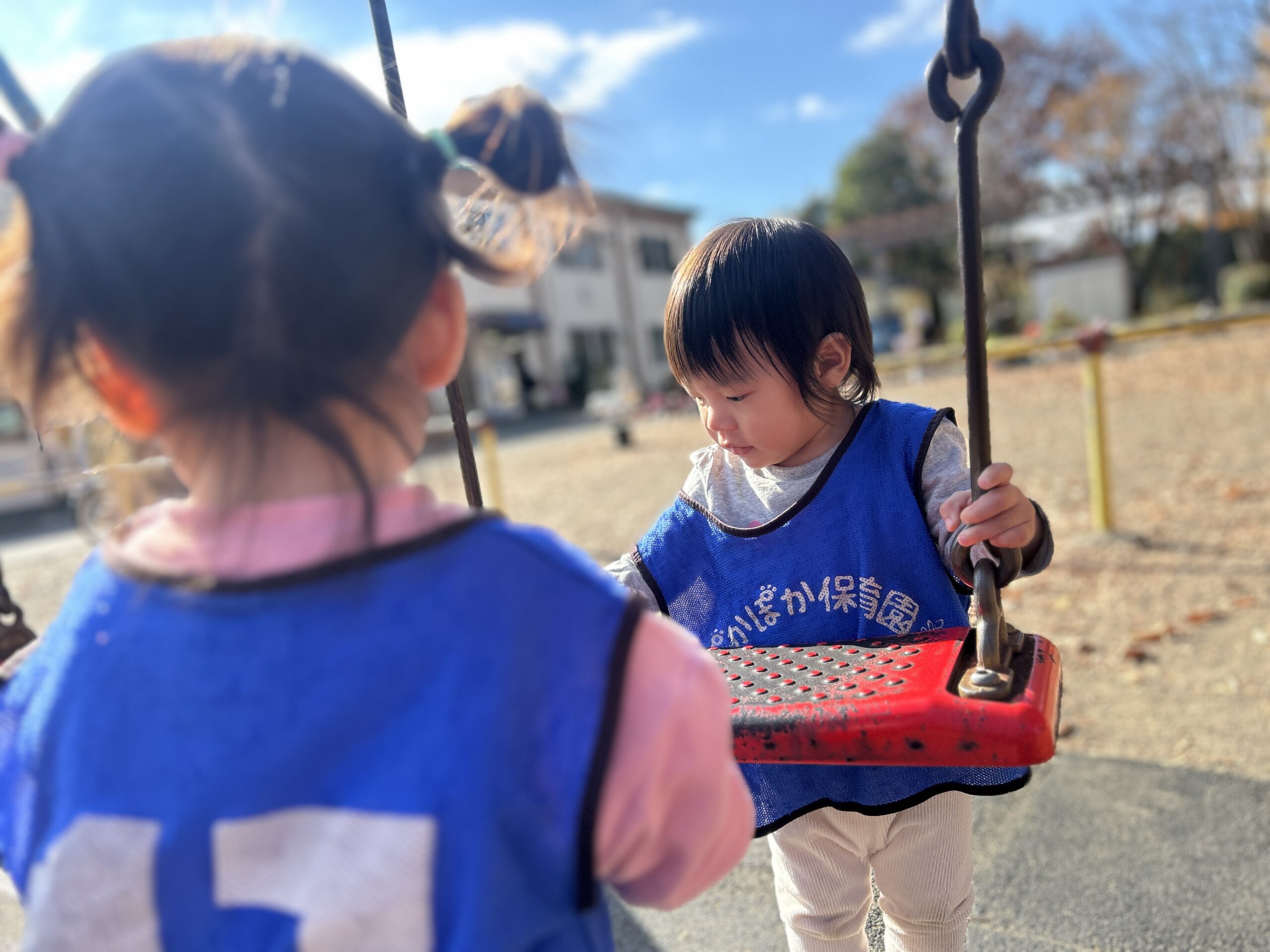 ブランコではゆっくり揺れて風の心地よさを楽しむ姿があり、滑り台でもバランスを取りながら上手にすべる姿が増えてきました。