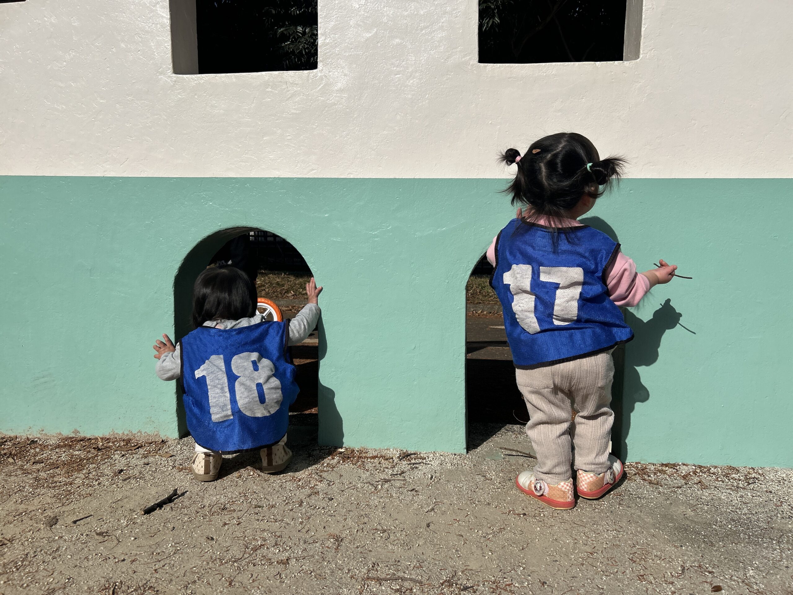 おうちの窓のような穴からひょこっと顔を出したり、「いないいない…ばぁ」と先生が声をかけると、