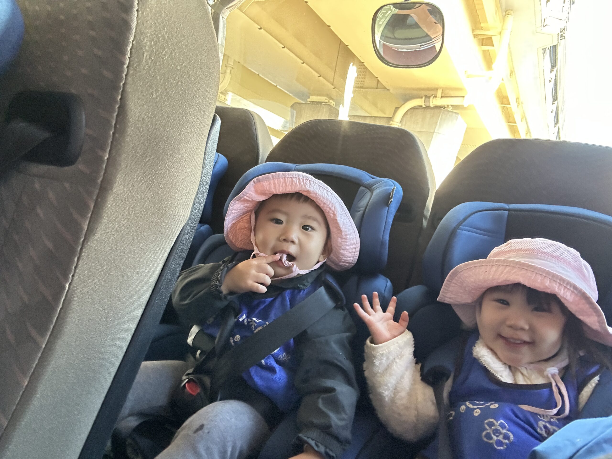 バスが動き出すと、窓の外に流れる景色をじーっと見つめたり、道路を走る車を見て「ぱとかー!」と嬉しそうに声を出したり、