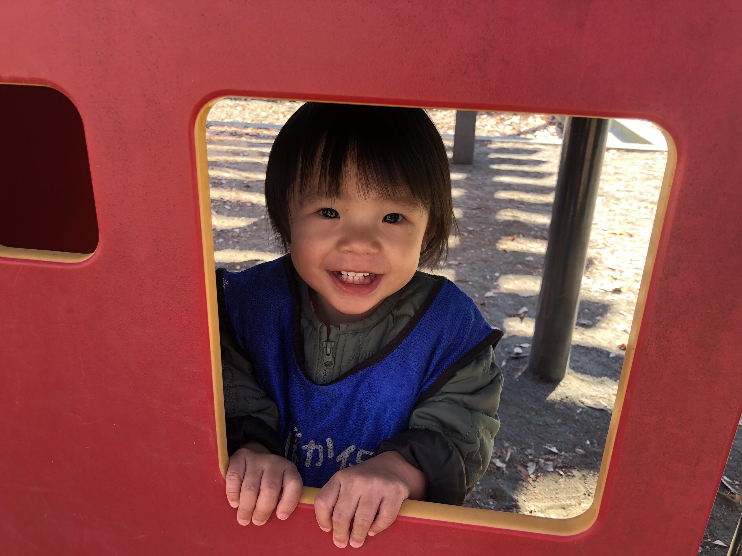 のぞかせたり、汽車の中を歩いて探検ごっこを楽しんだり、「いないいない、ばあ!」と先生と笑い合う姿がとても可愛いひとときでした。