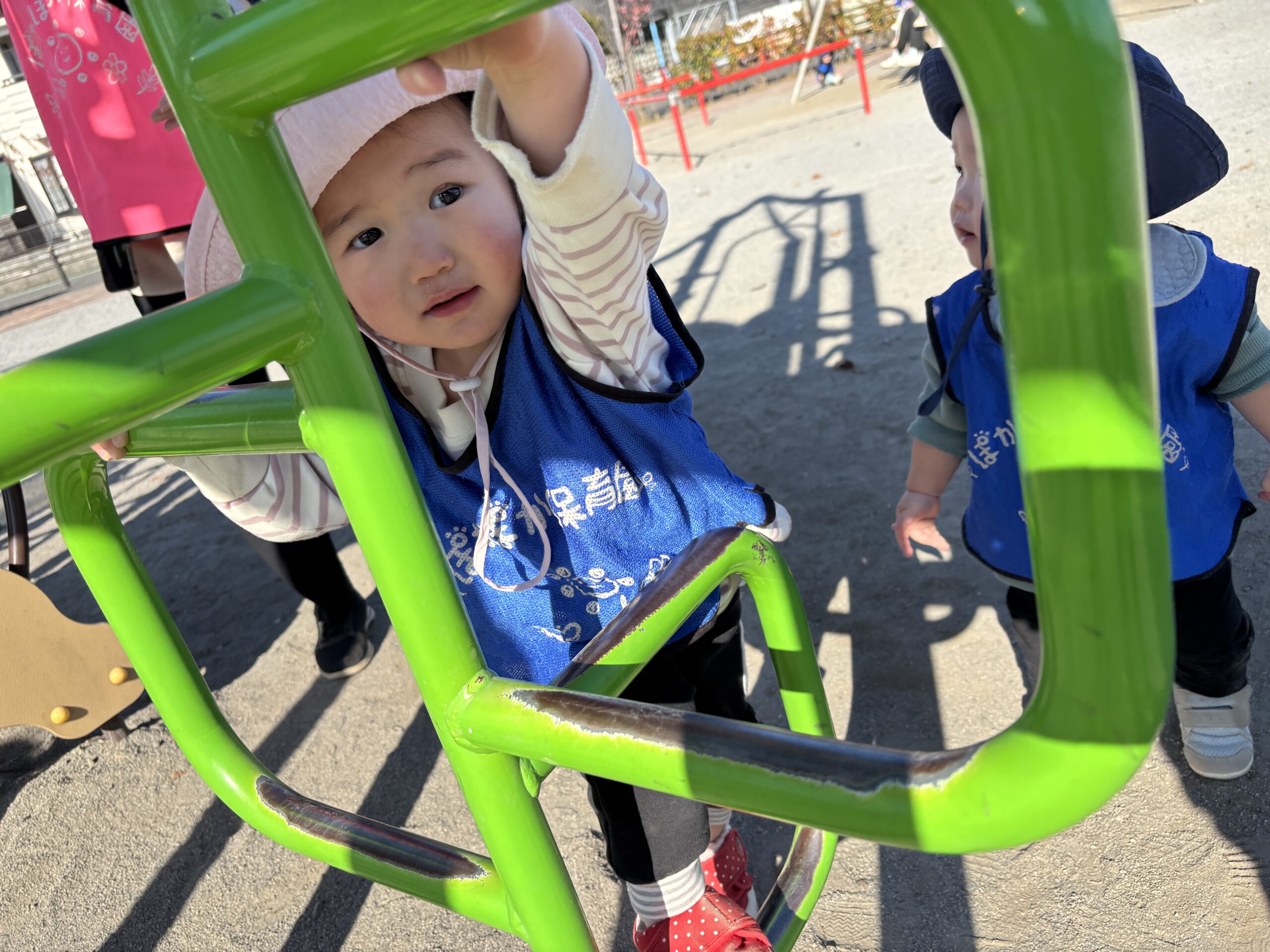 ぽかぽか保育園では、子どもの“やりたい気持ち”を大事にしながら、個別対応保育や幼児教育につながる関わりを日々意識しています。今日の遊びの中でも、手足を使って揺れを感じたり、遊具の構造に興味を持ったりと、小さな発見がたくさんありました。